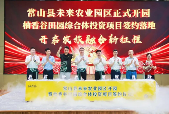 8月29日上午,常山县未来农业园区开园暨柚香谷田园综合体投资项目签约仪式在白石镇柚香谷农业总部隆重举行。这一项目不仅是柚香谷实现品牌跨越和产业升级的重要里程碑,更是常山县推动“两柚一茶”百亿产业战略落地的关键举措,彰显了农业现代化与乡村振兴深度融合的广阔前景。