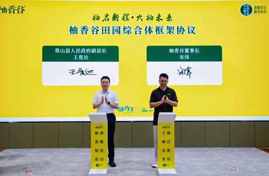 常山县委副书记、县长洪栋在致辞中说,“此次未来农业园区的开园和柚香谷田园综合体项目的签约,既是常山“双柚”产业冲击百亿产值的重大支撑,也是推动我县加速构建现代化农业产业体系的有力实践。希望柚香谷公司能以此为契机,继续挖掘胡柚、香柚多重价值,加快推动种植、研发、加工、旅游等元素深度融合,在饮料快消行业打开更大市场,在兴村富民方面展现更大作为“。县委县政府表示将以最诚心的政策、最优质的服务,为项目建设排忧解难、为企业发展保驾护航,助力柚香谷加快成长为有市场竞争力、品牌影响力和行业引领力的卓越企业。
