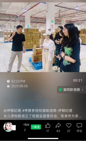 比如上海诺德安达国际学校,在合规招采、综合评价之外,创新性地成立组建校服监督委员会,组织家长、学生代表实地考察校服企业,全方位了解企业综合实力、品牌理念、环保公益和智能生产。校服监督委员会通过视频、照片等形式真实记录、家长群公示,进一步提升家长的知情权和满意度。