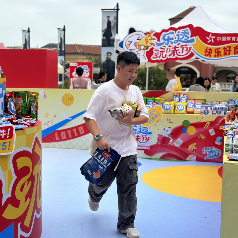 活动现场,“30秒疯抢好食屋”成为全场焦点。这座被设计成“巨型大乐透票”的互动装置点燃了在场观众的挑战热情。参与者们屏息凝神,随着计时器“嘀”声响起,迅速开启挑战。有人紧盯积分表精准挑选,有人快速锁定7件目标商品,30秒的倒计时里,欢呼声与惊叹声此起彼伏。不少“策略型玩家”成功通关并赢得“锦鲤大奖”。