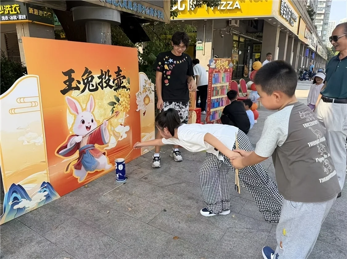 活动现场,猜灯谜、投壶等传统游戏与健康义诊、便民咨询等服务同步开展,既延续了中秋文化内涵,也体现了“便民生活圈”的服务温度。居民在品味老字号美食、体验智能汽车之余,还能参与文化互动、享受专业服务,真正实现了“一站满足多元需求”。这种“文化+服务+消费”的场景融合,不仅提升了居民的参与感与幸福感,也为社区商业的创新发展提供了新思路。