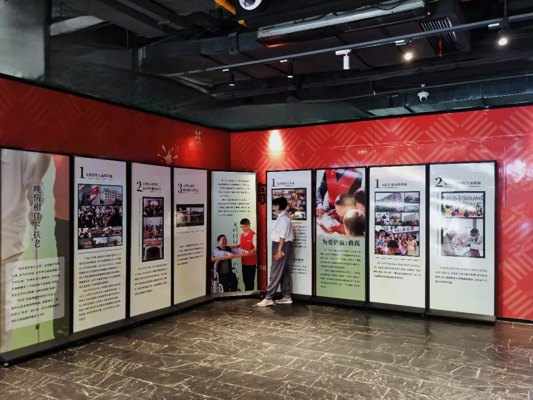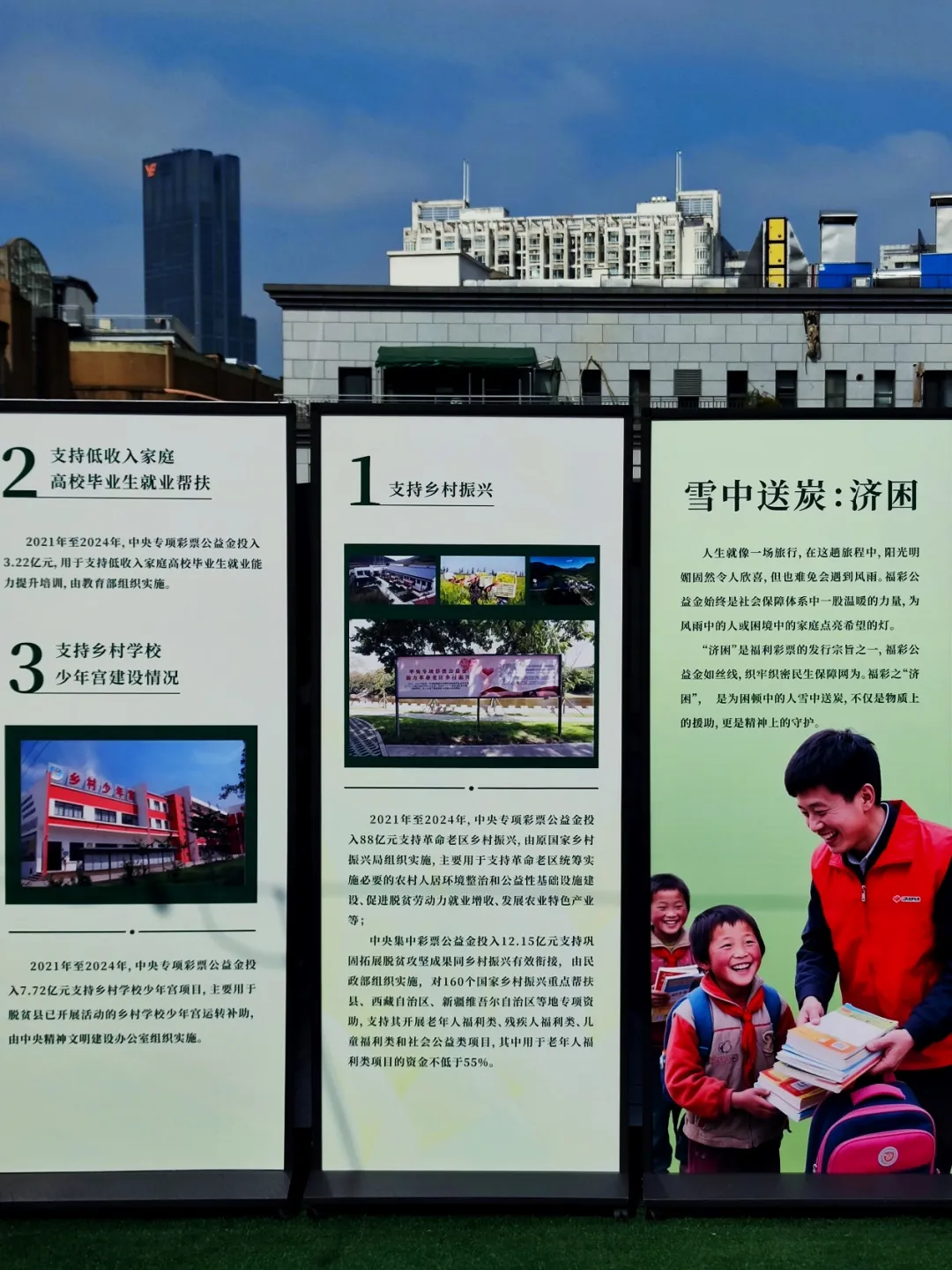 登上书店五楼天台展览区,蓝天白云之下、高楼环绕的这个特殊空间,“公益金”板块不再是冰冷的数据,而是一幅幅生动的画面:社区养老院里老人幸福的笑容、残疾人士康复中心的温馨场景、孤儿院孩子们纯真的眼神……每一张图片都在讲述公益金的善意如何化作实际的善行。