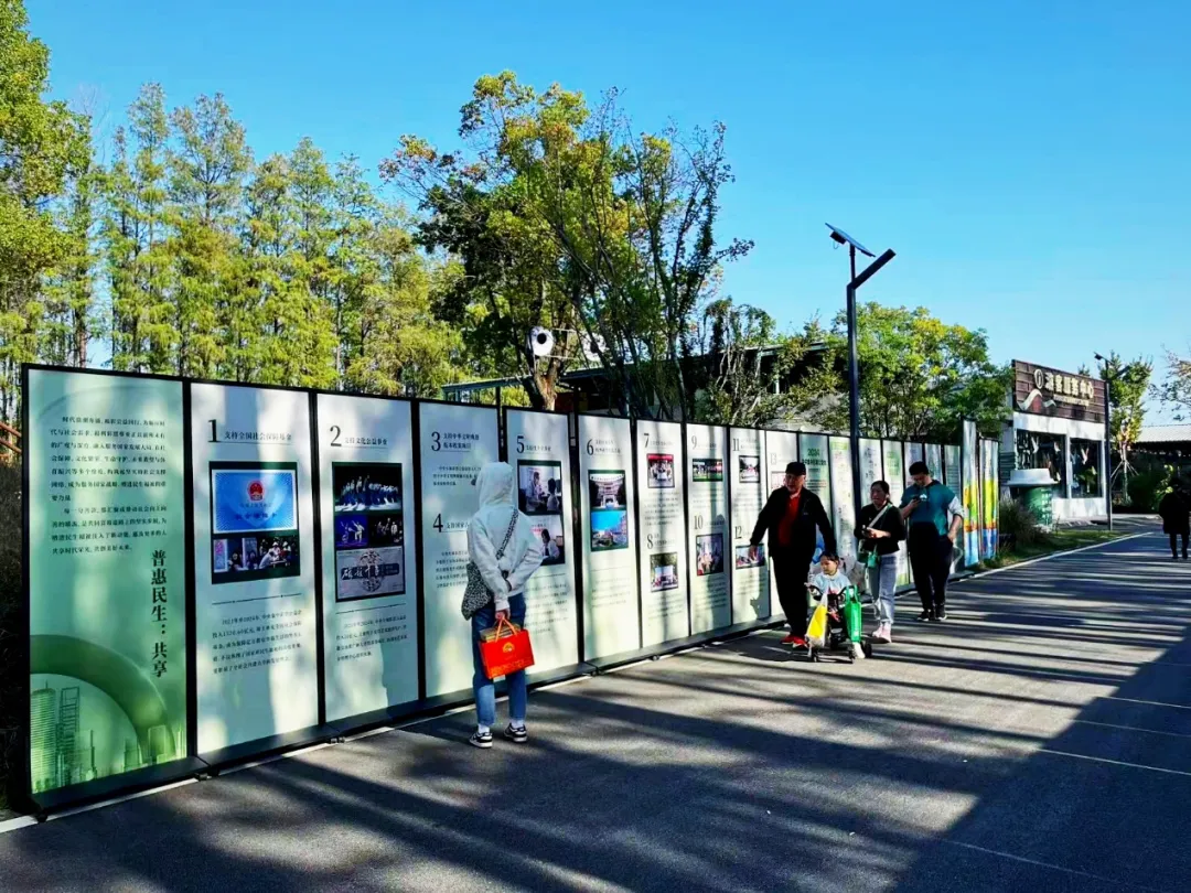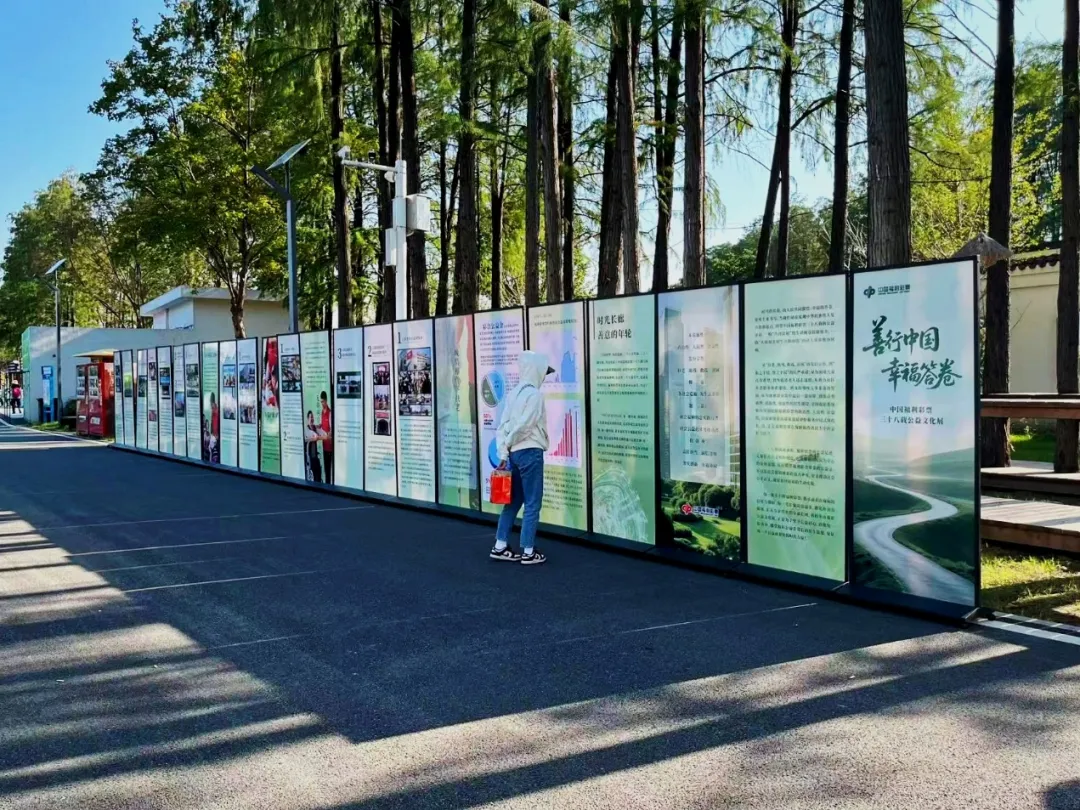 想象这样一个场景:漫步在波光粼粼的湖畔,一边欣赏自然美景,一边在“爱心”板块前驻足。这里的展板设计充分考虑了自然环境特点,采用开放式布局,让公益故事与自然景观相映成趣。展板上那些记录福利彩票发行宗旨的图片,映衬着美丽的自然环境,更显生动感人。