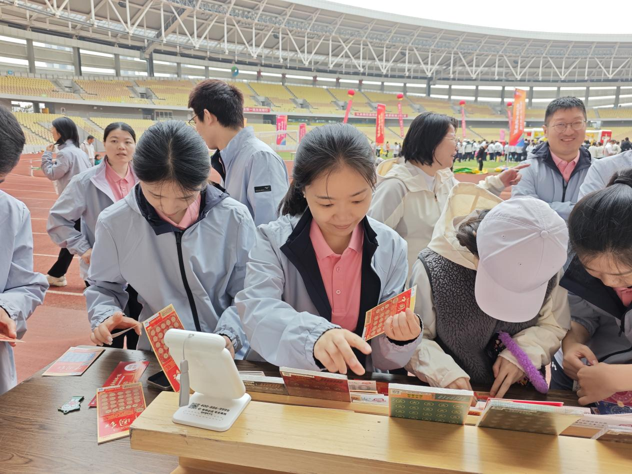 运动场上,气氛热烈。田径赛道上的呐喊声与集体项目中的欢笑声交织一片,而在赛场边,中国体育彩票的展示体验中心同样人气十足。刚刚结束比赛的职工们三五成群地来到这里,有的被顶呱刮即开型彩票精美的票面所吸引,迫不及待地体验“一试身手”的乐趣;有的则仔细聆听工作人员讲解,了解手中每一张彩票如何汇聚成公益力量,支持着身边体育馆、健身路径的建设。指尖轻轻刮开覆盖膜,期待与惊喜在刹那间绽放,小小的彩票不仅为紧张的赛事带来了别样的趣味,更让“公益体彩”的理念在轻松愉快的互动中深入人心。