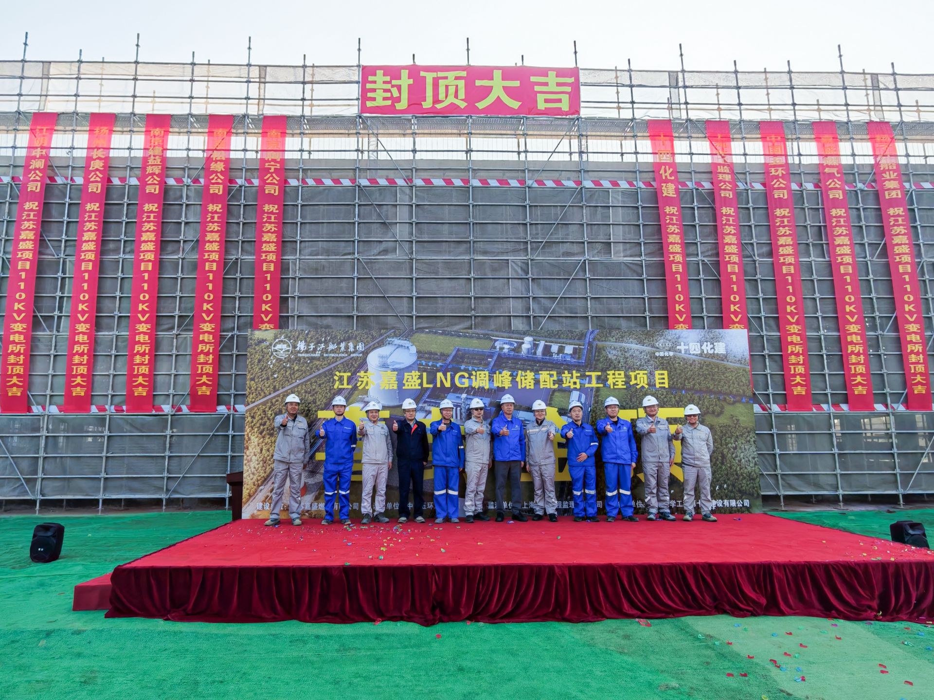 荆楚网(湖北日报网)讯(通讯员 张坤)10月28日,由中国化学所属中国五环工程有限公司总承包建设的江苏嘉盛LNG调峰储配站工程项目110KV变配电所如期实现主体封顶,项目已转入二次结构施工与设备安装筹备阶段。