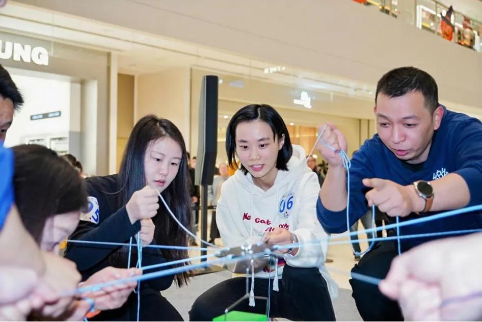 合力筑塔游戏时,从最初的手忙脚乱,到后来的同步动作,队员们彼此配合,没人争抢“操作权”,只愿为共同的筑塔目标让步,大家击掌欢呼的模样,正是凝聚力与协作精神的生动展现。
