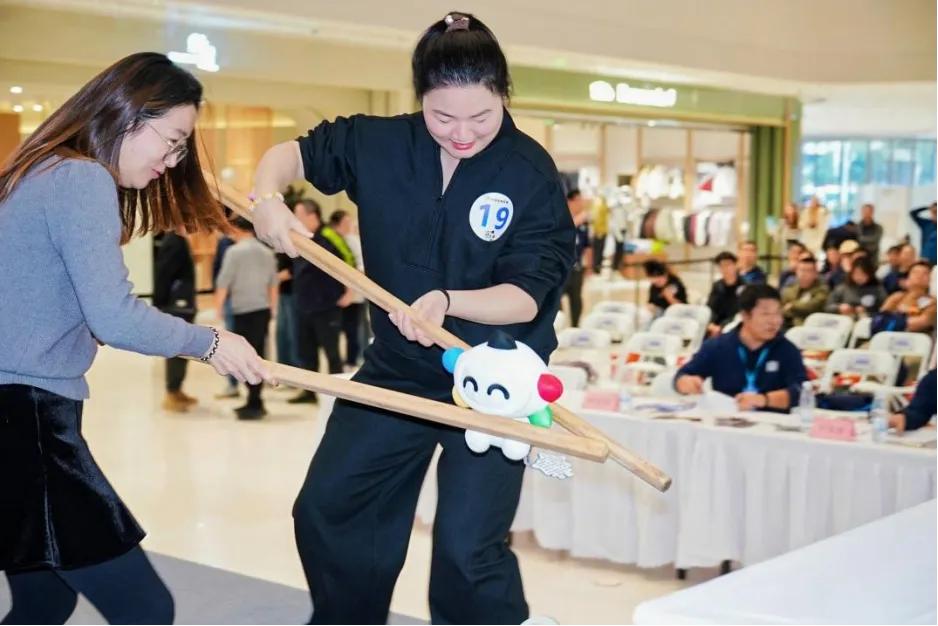 作为大赛的最后比拼环节,团队协作赛聚焦“协作效率”, 长筷子夹夹乐的瞬间,团队协作的精神具象成鲜活画面:有人屈膝稳住基座,紧盯队友的筷子轨迹;有人压低声音喊出“慢半拍”……