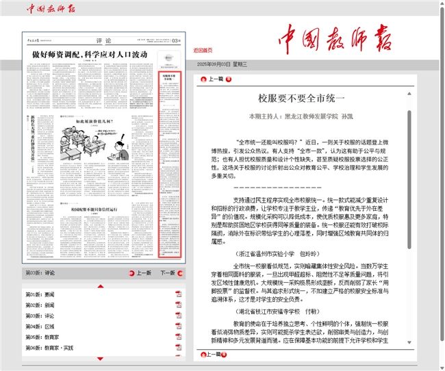 然而,这一规定与教育部相关政策要求存在明显冲突。教育部2025年印发的《全国中小学校服管理“应知应会”》明确延续2015年四部委校服新政精神,提出“校服款式一经选用要保持相对稳定,原有校服款式获多数认可的可继续沿用”。政策同时界定,学校是校服采购的责任主体,需“在深入论证和与家长委员会充分沟通的基础上确定是否选用校服”,且需征得“相关年级2/3以上家长同意方可启动采购”。教育专家指出,沈阳“三严禁”直接剥夺了学校对原有认可款式的沿用权,即便某所学校的原有校服获得多数家长学生认可,也需暂停使用并参与全市统一投票,这实质上架空了学校的主体决策地位,与“学校是校服采购的责任主体”的政策要求相悖。