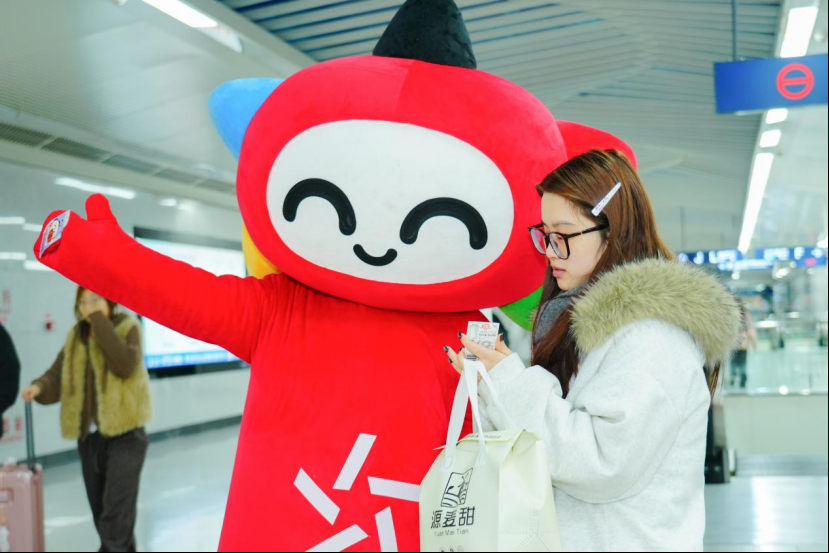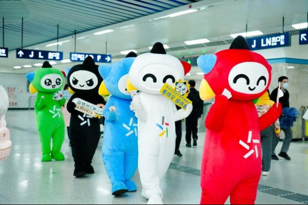 近日,武汉地铁街道口站内迎来了一场快闪活动——10个体彩吉祥物乐小星组成整齐队列,手持主题牌穿梭于站内各个区域,用灵动可爱的姿态为通勤乘客送上祝福。