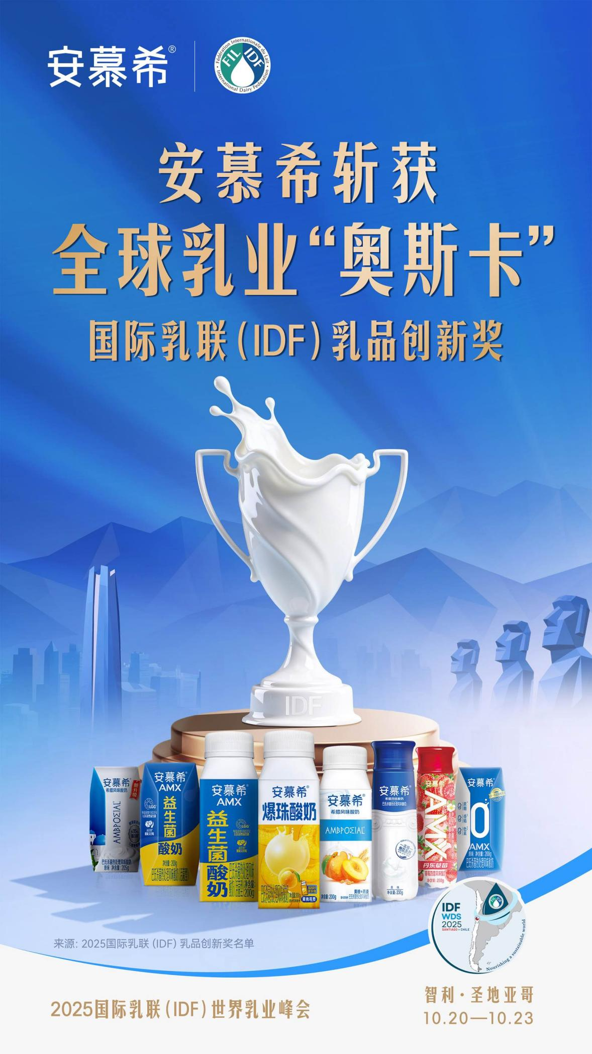 伊利液态奶的高频创新实力,不仅提升了产品的市场竞争力,更屡获国际权威奖项:2025年,伊利液态奶连续三年斩获被誉为全球“乳业奥斯卡” 的国际乳联(IDF)乳品创新奖,彰显伊利液态奶多维创新实力。