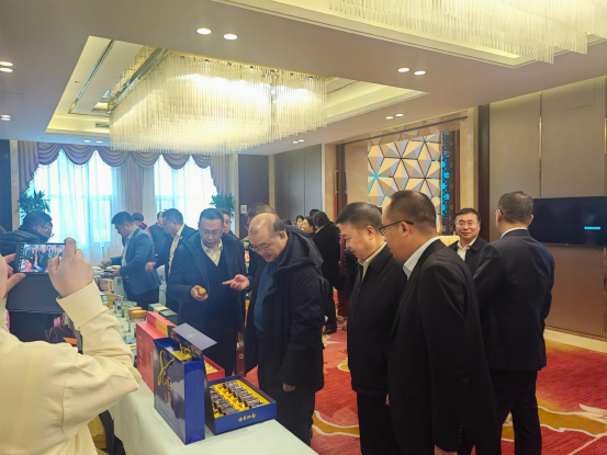 恩施州高新投资发展集团有限公司董事长胡铭现场推介与硒资源研究与生物应用湖北省重点实验室联合开发的特色硒精深加工产品。
