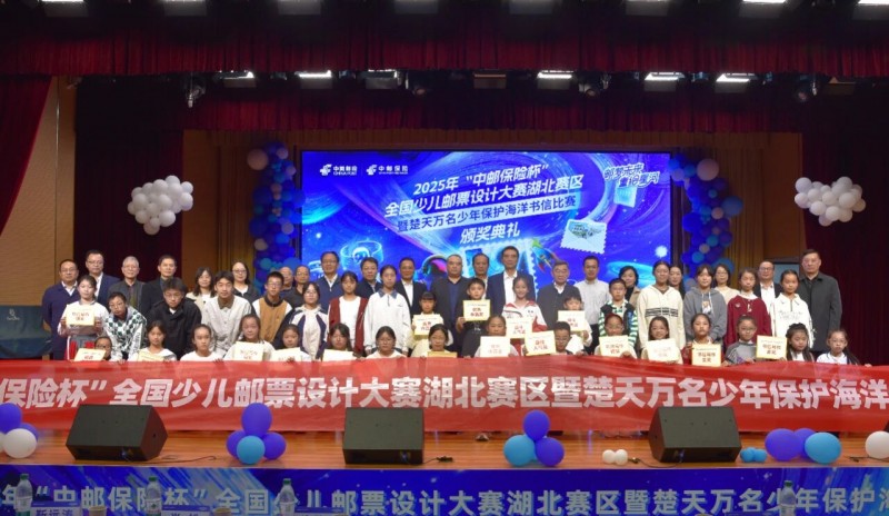 10月18日,2025年“中邮保险杯”全国少儿邮票设计大赛湖北赛区暨“楚天万名少年保护海洋书信比赛”颁奖典礼在武汉举行。省邮政分公司副总经理刘俊峰、中邮保险湖北分公司总经理张成豪等领导出席活动,并为获奖代表颁奖。部分获奖学生及其家长、优秀指导老师和“优秀组织奖”单位代表共200余人参加活动。
