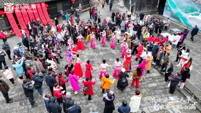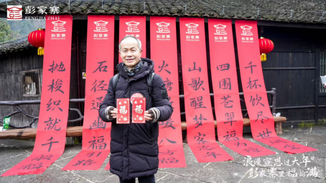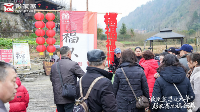 随处可见的打卡点成为景区里的别样风景。“拍福照”环节以“步步见福、时时留福”为设计核心,每一处场景都紧扣“福”字主题,吊脚楼前游客随手一拍皆是福气满满的瞬间。大家纷纷将照片分享至社交平台,自发为彭家寨新春活动代言,为景区汇聚“流量”、转化“留量”,让彭家寨的新春年味走向更广阔的天地。