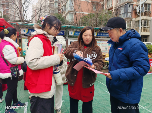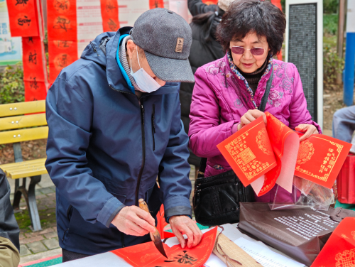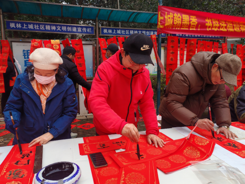 新春将至,年味渐浓。为深入传承中华优秀传统文化,切实践行为民服务宗旨,进一步浓厚辖区新春喜庆氛围,筑牢春节安全防线,2月3日上午,枫林上城社区携手社区居家养老中心、关山书画院、洪山商会,在小区篮球场成功举办以“写春联送福字、便民服务、禁鞭安全宣传”为核心的新春系列活动。活动以文化为纽带、以服务为载体、以安全为底线,为辖区居民送上了一场兼具文化韵味、便民温度与安全保障的新春盛宴。