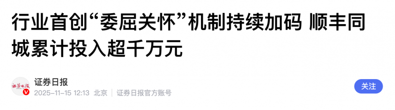 记者了解到,除冬季专项关怀外,顺丰同城在骑手保障上的投入逐年拓展。2025年,平台在骑手关怀与保障相关方面累计投入约5.3亿元,其中业内首创的骑士委屈关怀基金已追加投入超千万,同时设立了总额500万元的见义勇为专项基金、3000万元的骑手圆梦发展基金,并为骑手子女设立奖学金与助学金。