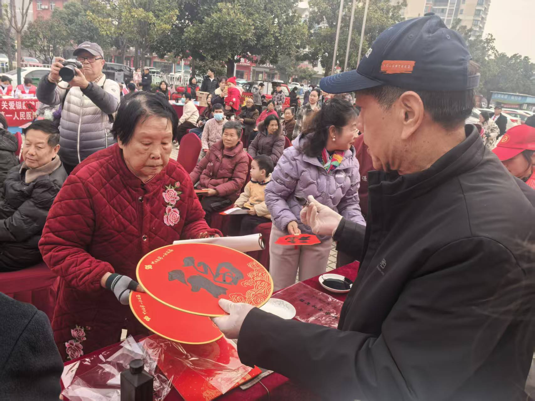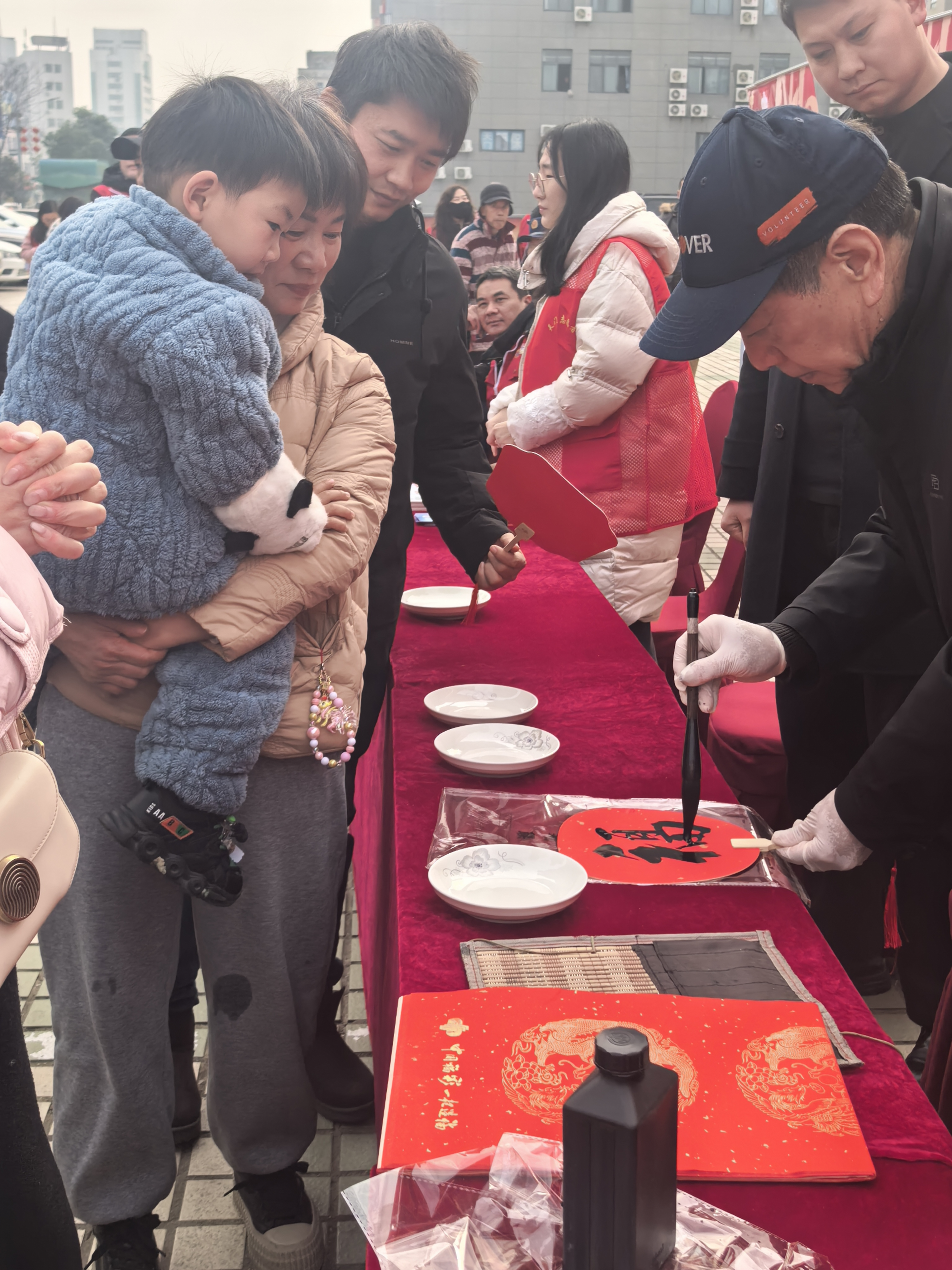 在“笔墨迎春”区域,来自湖北老年书画艺术中心和天门市老年书画协会的多位银龄书法家现场挥毫泼墨,笔走龙蛇。一副副蕴含新春祝福与福彩文化的春联、一个个苍劲有力的“福”字,在他们笔下流转生成,吸引了众多市民驻足欣赏、有序领取。