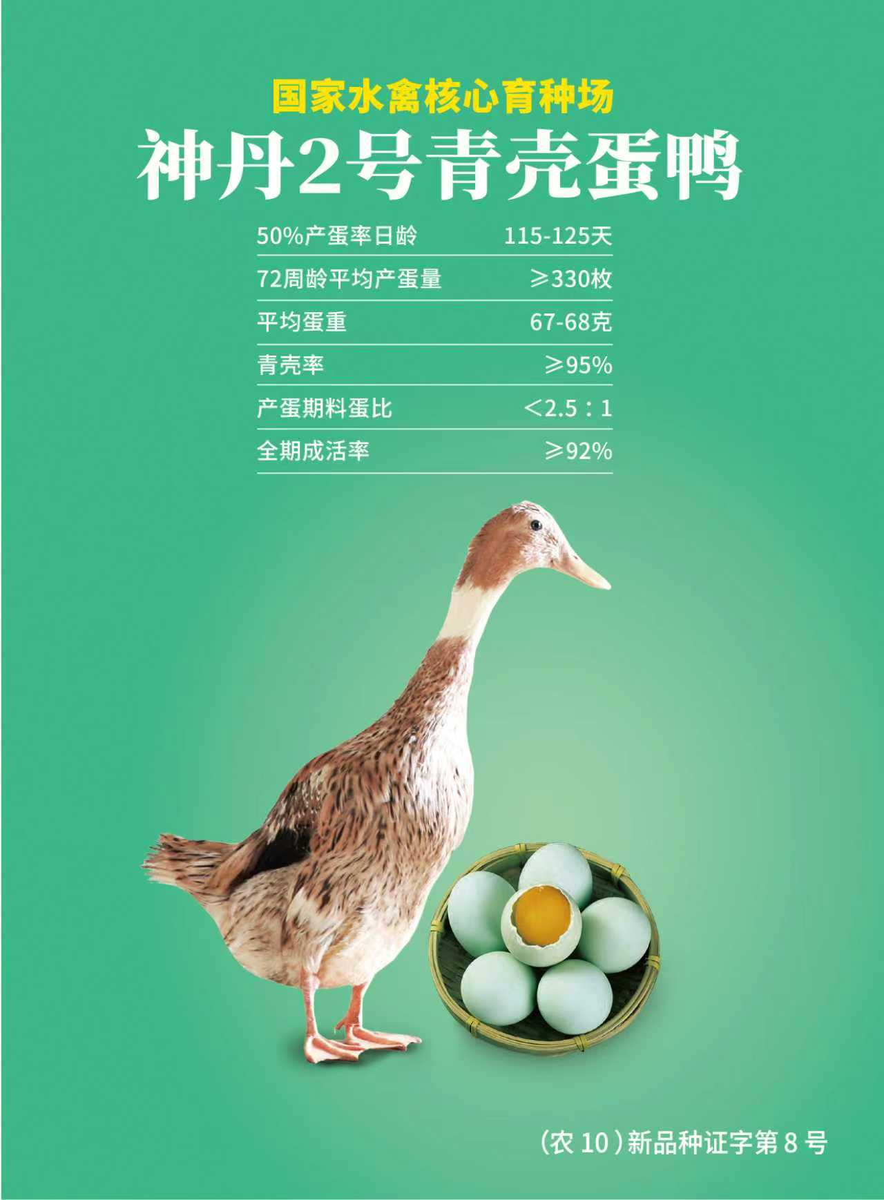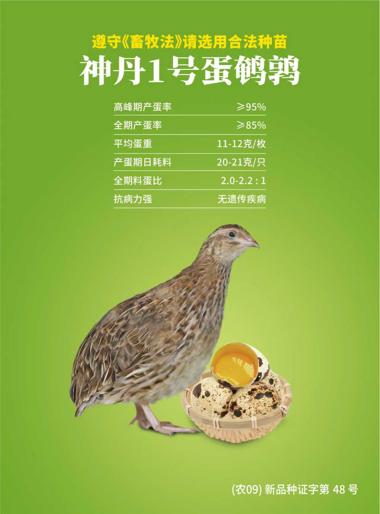 在国家种业振兴战略指引下,神丹历经十余年科研攻关,成功培育“神丹1号”鹌鹑、“神丹2号”蛋鸭、“神丹6号”绿壳蛋鸡三大国家级蛋禽新品种配套系。其中“神丹1号”鹌鹑是全国唯一通过国家审定的鹌鹑新品种。2022年,神丹入选农业农村部国家畜禽种业阵型企业。