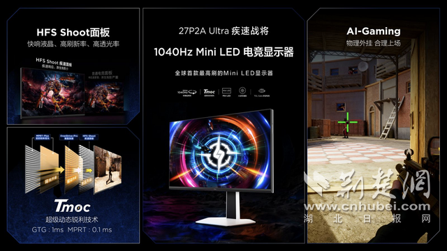 而“疾速战将”P2A Ultra系列,则成功引领电竞显示的刷新率与清晰度革命,作为专为追求极限竞技性能的玩家打造的产品,P2A Ultra系列是全球首款达到1040Hz超高刷新率的Mini LED电竞显示器。该系列同样搭载深度定制的HFS Shoot原厂极速屏,液晶响应时间被压缩至极限,刷新信号稳定性极强,避免了高刷下的画面撕裂或抖动。同时,P2A Ultra采用Tmoc超级动态锐利技术,通过双控背光矩阵同步操控逐行扫描与Mini LED分区背光,精准处理极限刷新率下的拖影问题,并高亮目标身影。