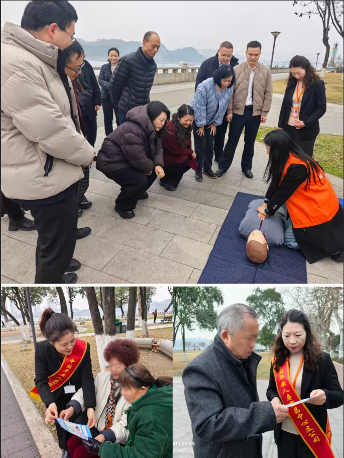启动仪式现场,公司讲师蒋琴带来了急救知识科普,涵盖了心肺复苏、气道异物梗阻急救、创伤处置等多个方面,讲解生动直观、操作性强,吸引了众多往来群众驻足学习、主动互动,现场学习氛围浓厚。同时现场的工作人员主动向过往老年人发放宣传折页,围绕反诈防骗、个人信息保护、保险权益维护等群众关心的内容开展一对一讲解。市民们认真聆听、积极咨询。