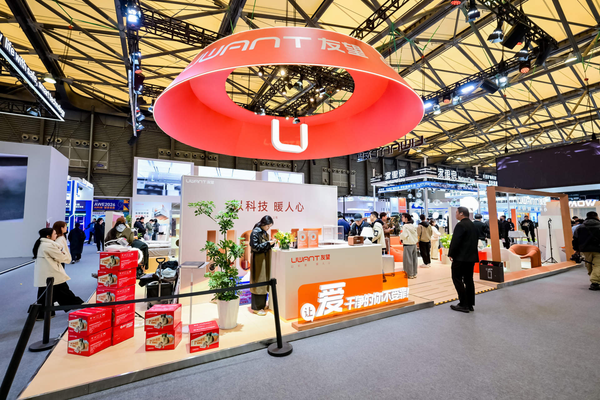 在AWE2026的展馆里,既有“有手有脚”的家电向观众展示未来的无限可能,也有在E1馆中心位置的友望正在用它的方式告诉观众:明天是个谜团,而今天是天赐的礼物,在展望“未来家”的同时,有人正在关心你每一天的清洁打理是否更有效、更省力、更舒心。无论技术如何演进,科技的终点,始终是人,所以友望选择“以科技·暖人心”。