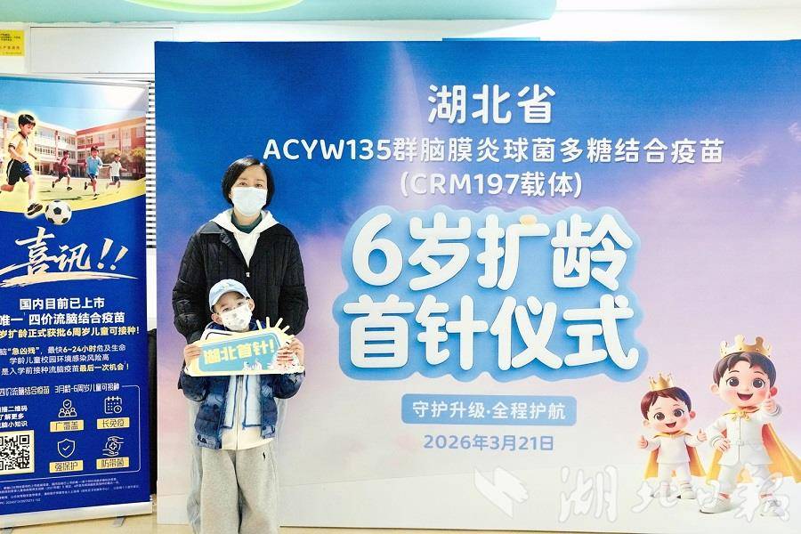 湖北日报讯(通讯员李雪)3月21日,湖北省妇幼保健院完成ACYW135群四价流脑结合疫苗——曼海欣®在6岁儿童人群的首针接种。这是继该疫苗获批将适用年龄从3月龄至3周岁扩龄至6周岁之后,湖北落地的首针适龄儿童接种,标志着湖北省流脑防控体系进一步完善,为即将入学的6岁之前儿童筑牢校园健康“防护墙”。