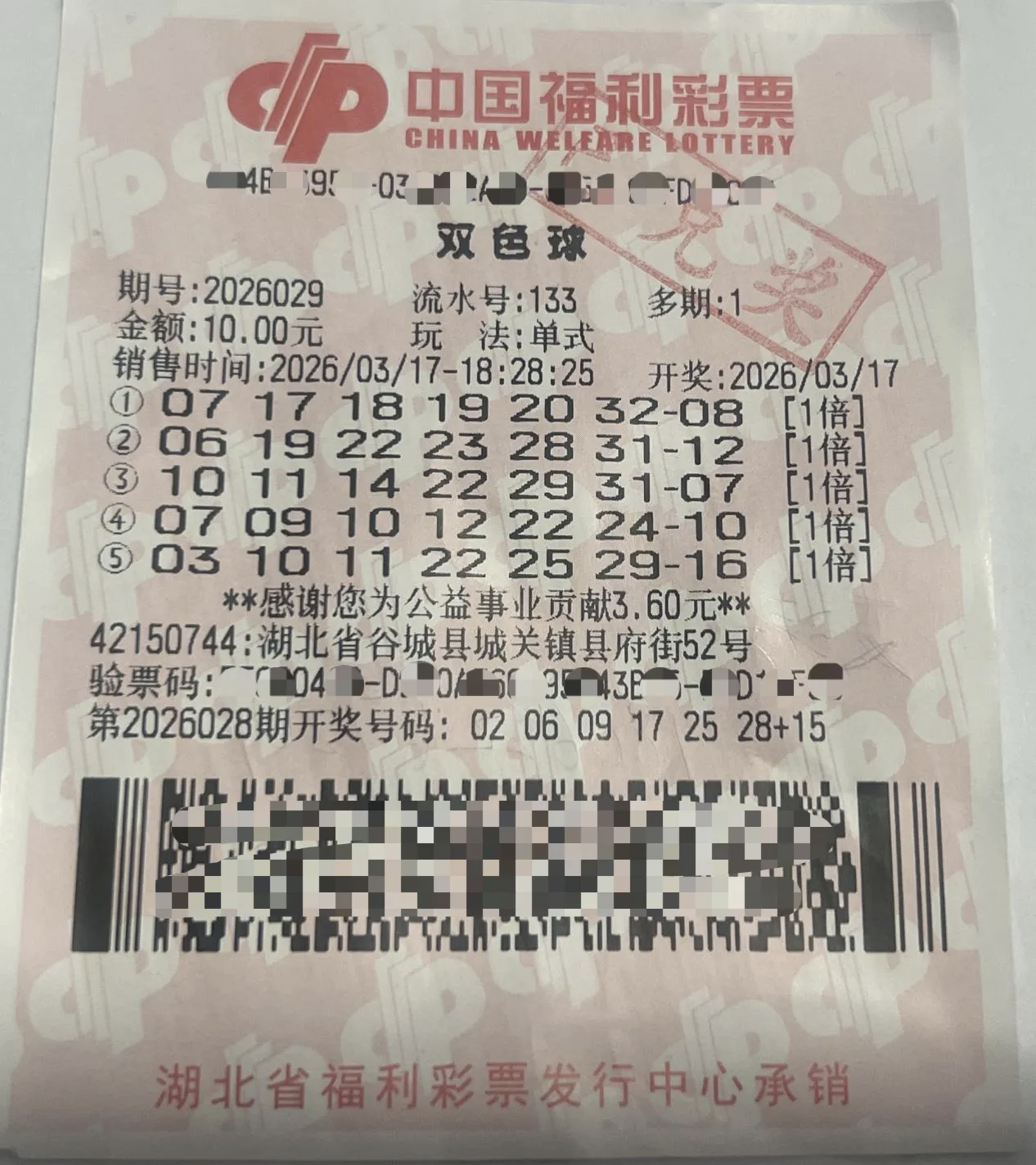 图为中奖票