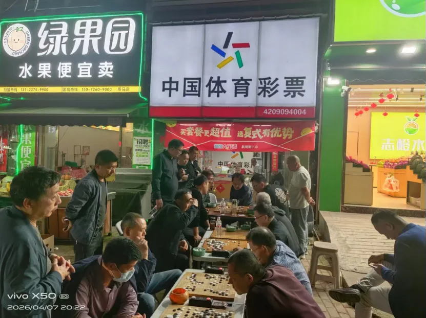 夜幕降临,华灯初上。近日,汉川市马口镇中国体育彩票4209094004 门店前,一场别开生面的围棋对弈正火热进行。棋盘之上,黑白棋子纵横交错、落子铿锵;棋盘周围,棋友们围坐观赛、凝神静思,在夜色中勾勒出温馨和睦的邻里图景。这不仅是一场棋艺切磋交流,更是湖北体彩践行“公益体彩 乐善人生”品牌理念、打造社区便民服务阵地的生动实践。