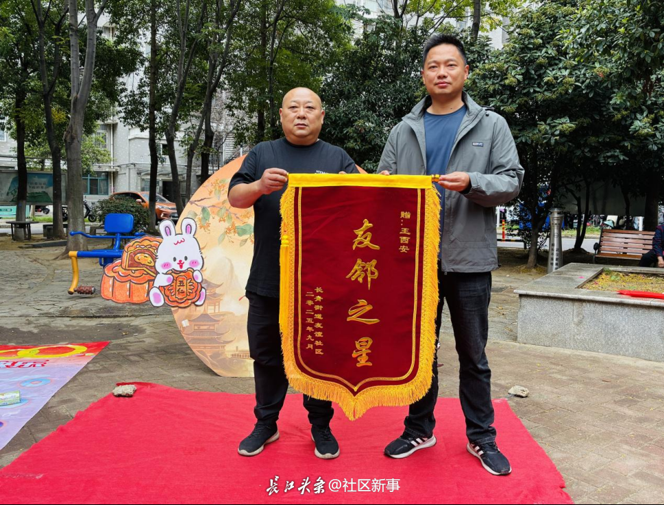 活动伊始,社区书记周世祥为武汉市惠福汽车销售服务有限公司颁发奖牌,表彰其长期支持社区公益事业,包括资助困难家庭、赞助文化活动等善举。公司代表表示:“作为社区一员,我们愿持续为邻里幸福贡献力量。”同时,“友邻之星”王西安因热心助老、组织志愿巡逻队等事迹获得居民一致点赞。他感慨道:“社区就是家,能为家人做点事很开心。”
