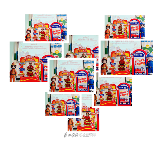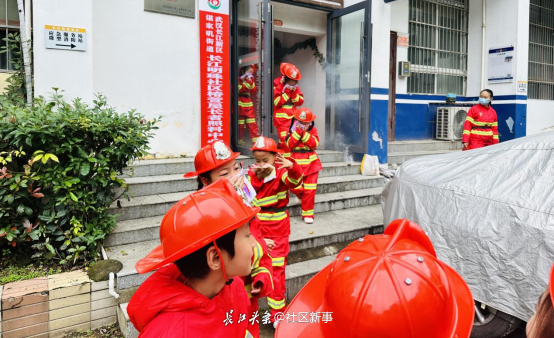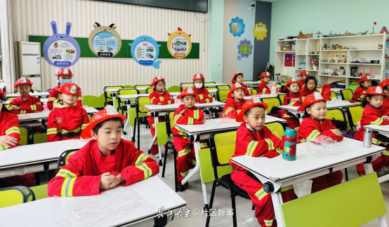 知识的学习最终要服务于实践。10点整,活动进入紧张而有序的消防安全实战演习阶段。随着模拟火警警报的响起,在志愿者老师的引导下,孩子们用湿毛巾捂住口鼻,低姿弯腰,沿着预定疏散路线迅速、有序地撤离至社区防灾减灾室门口的安全区域。随后,志愿者老师现场展示并详细讲解了灭火器的构造及“提、拔、握、压”四步操作法,并指导部分孩子进行了灭火实操体验。最让孩子们兴奋的是“小小消防员”环节,大家争先恐后地试穿迷你消防服、佩戴消防头盔,在留影中感受消防员职业的神圣与光荣,责任感的种子悄然萌发。