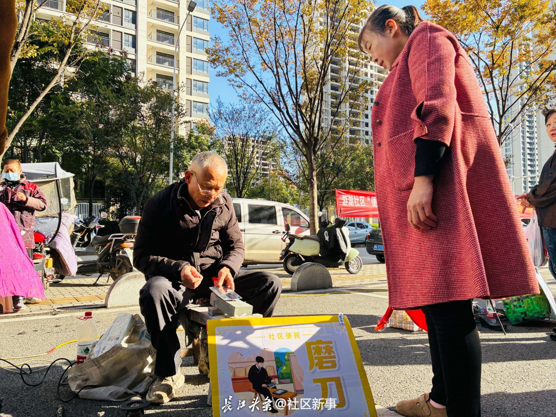 活动现场秩序井然,各类便民服务摊位有序排布,专业服务人员早早到位,以饱满的热情迎接每一位前来的居民。社区整合优质资源,推出涵盖磨刀、理发、配钥匙、缝补、修鞋等便民服务,满足居民多样化、个性化的生活需求。服务过程中,工作人员耐心细致、专业高效,用扎实的技能和暖心的态度赢得了居民的一致认可。