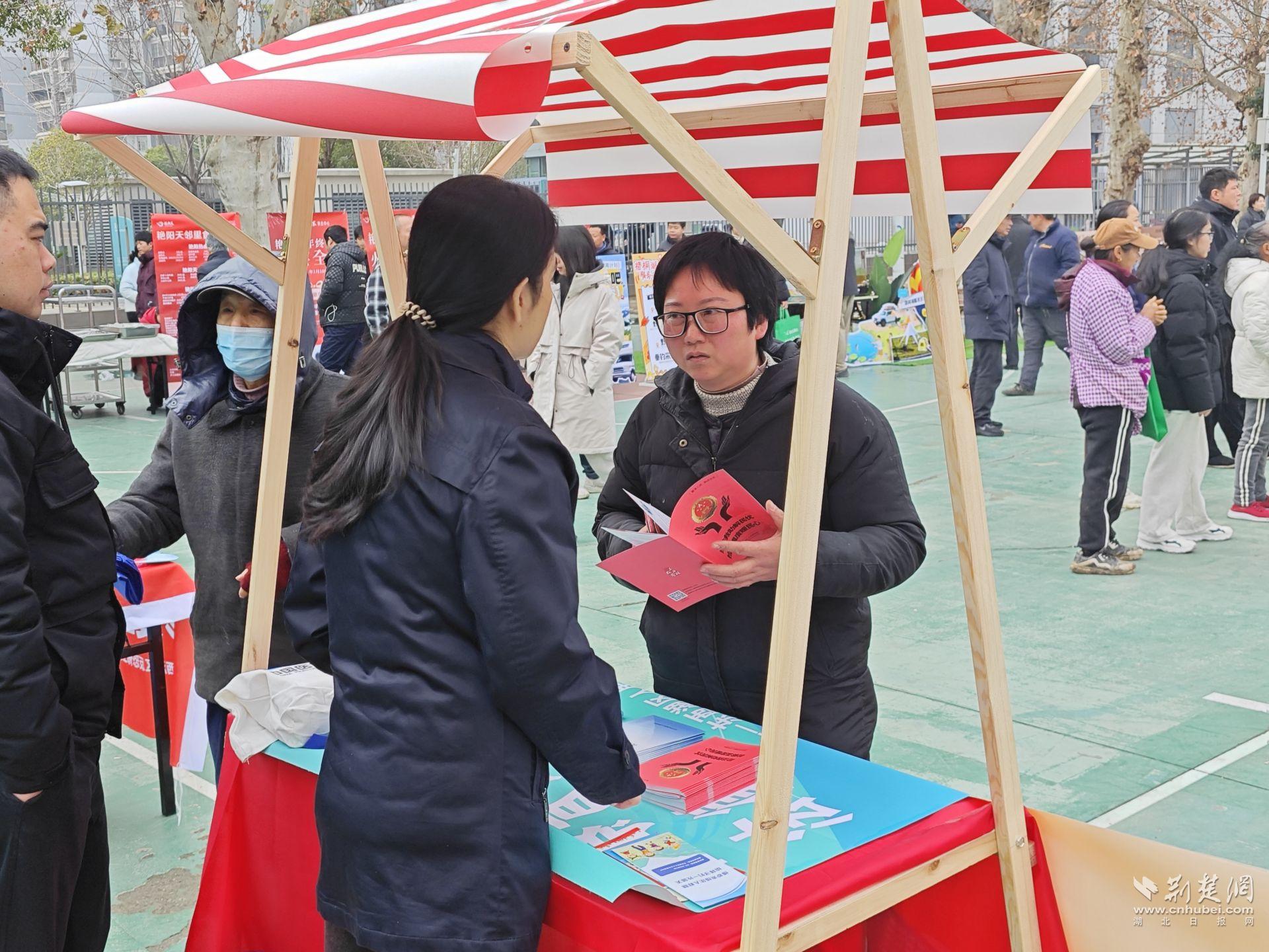 本次普法集市活动由中共东西湖区委全面依法治区委员会办公室主办,区人民检察院、区司法局、区市场监督管理局、区卫生健康局、区医疗保障局、区妇联和将军路街道相关单位共同参与。将军路街道基层职工、将军路商会企业代表、辖区居民共计200余人参与活动。