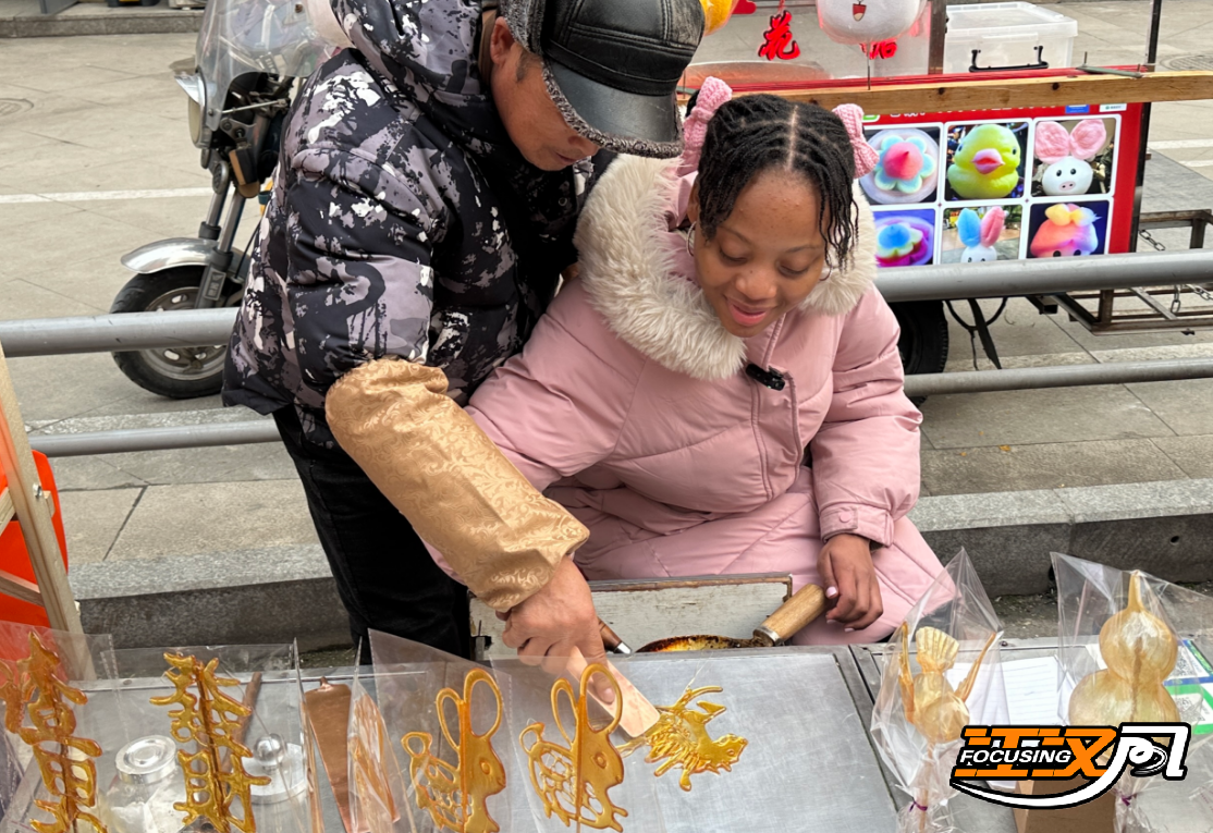 来自十多个国家和地区的外国留学生走进“荆楚年味·楚肆庆春”新春市集,沉浸式体验地道中国年俗。画糖画、吹糖人、制作糖葫芦,指尖流转的是代代相传的民间技艺;农家米酒、软糯米糕、特色臭豆腐,舌尖品味的是最鲜活的东方烟火。大家驻足体验、动手创作,在楚式漆器展区聆听非遗故事,于一雕一琢、一漆一纹间,触摸荆楚文化的厚重与精巧,加深对中华传统文化的认知与理解。