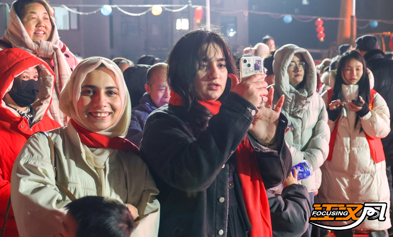 夜幕降临,非遗展演次第登场,流光溢彩、震撼人心。飞天宫灯凌空舒展,如星河倾泻、似天女散花,勾勒出新春最美的光影画卷;当绚烂打铁花凌空绽放,漫天金雨照亮夜空,不少留学生坦言是人生初见,真切感受到这份来自中国新年最炽热、最浪漫的祝福。省级非遗炭花舞、火壶绝技、经典楚剧轮番上演,锣鼓铿锵、唱腔婉转,演员与民众同乐,乡亲们淳朴热情的笑脸,让远道而来的客人们倍感亲切与温暖。