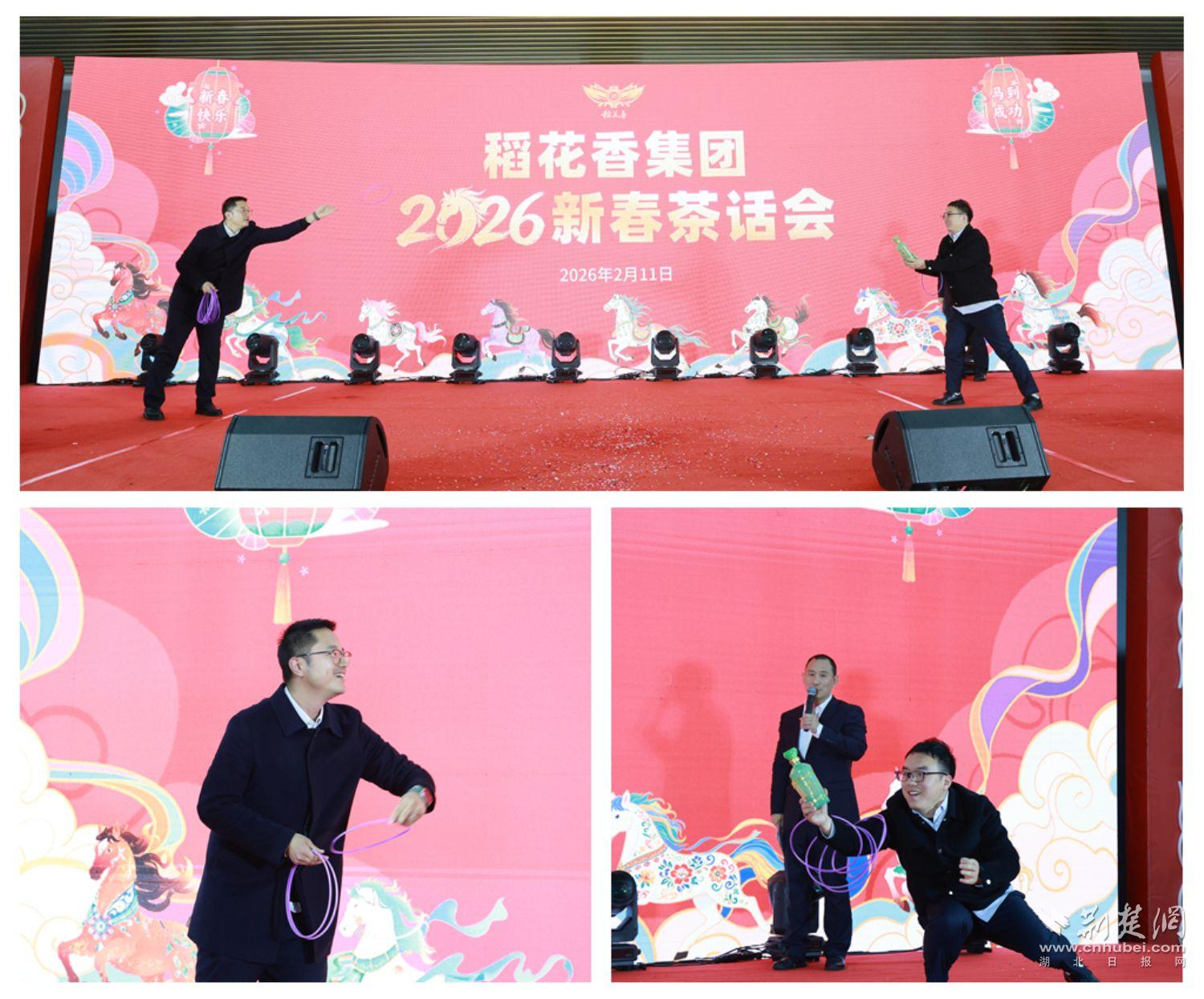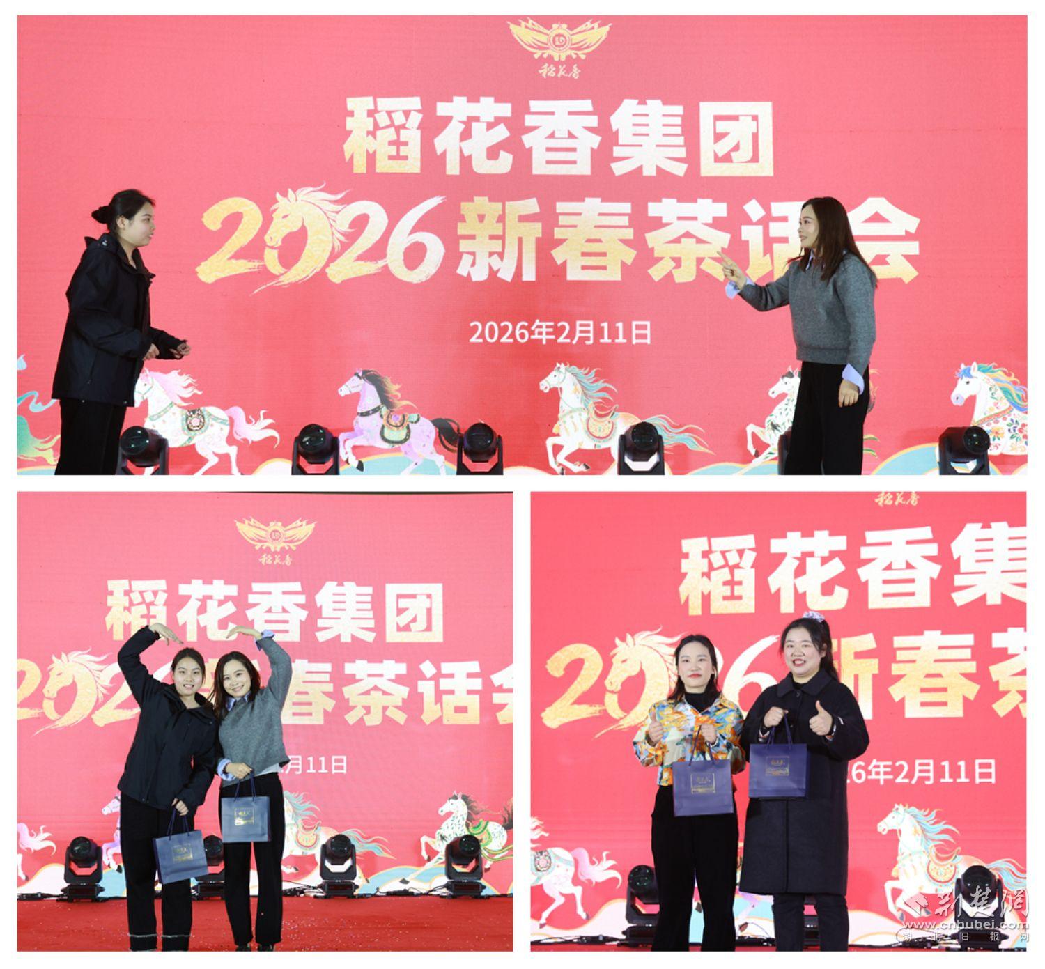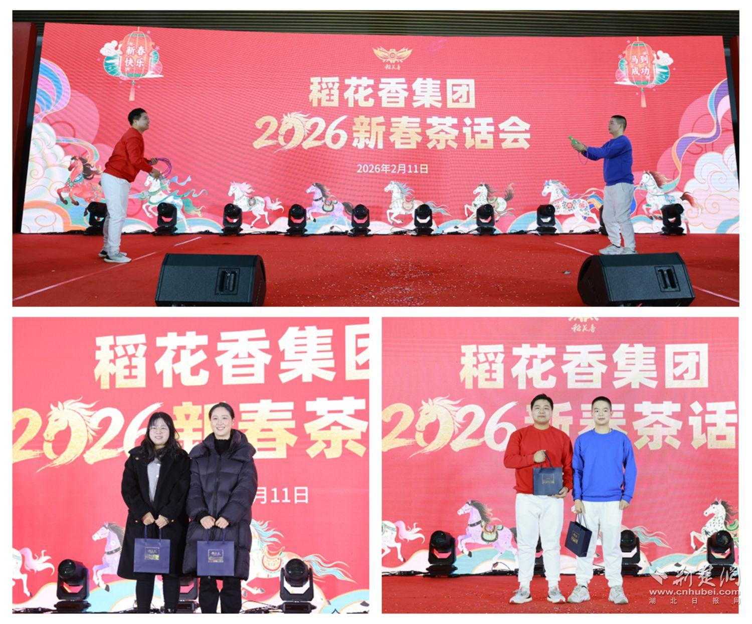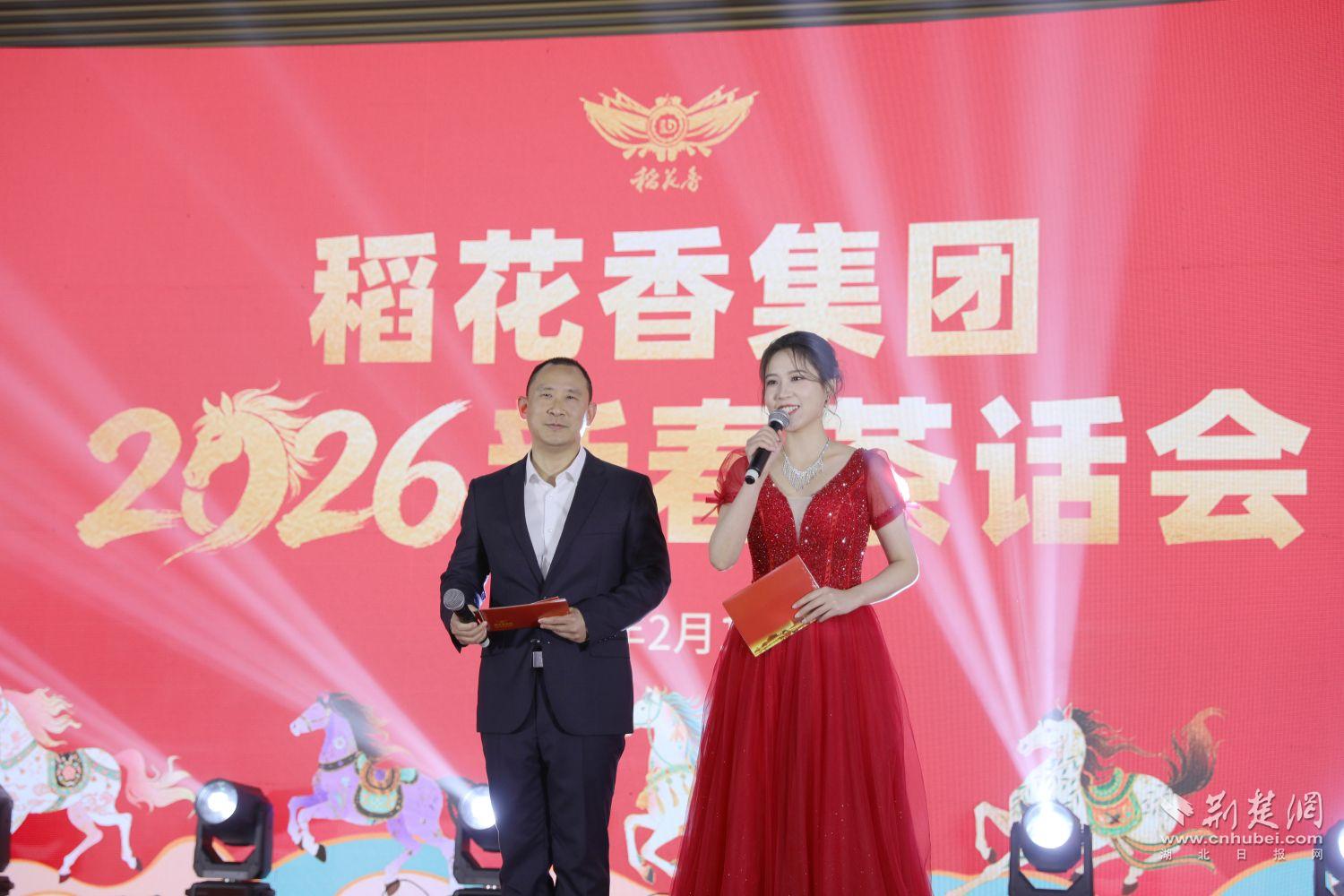 荆楚网(湖北日报网)讯 (通讯员 刘芹芹 张丽 袁林 刘重康)马蹄声声辞旧岁,欢歌笑语迎新春。2月11日晚,稻花香员工餐厅内灯火璀璨、活力升腾,稻花香集团2026新春茶话会在此浓情举行,共忆奋斗征程,同绘发展蓝图,喜迎新春佳节。