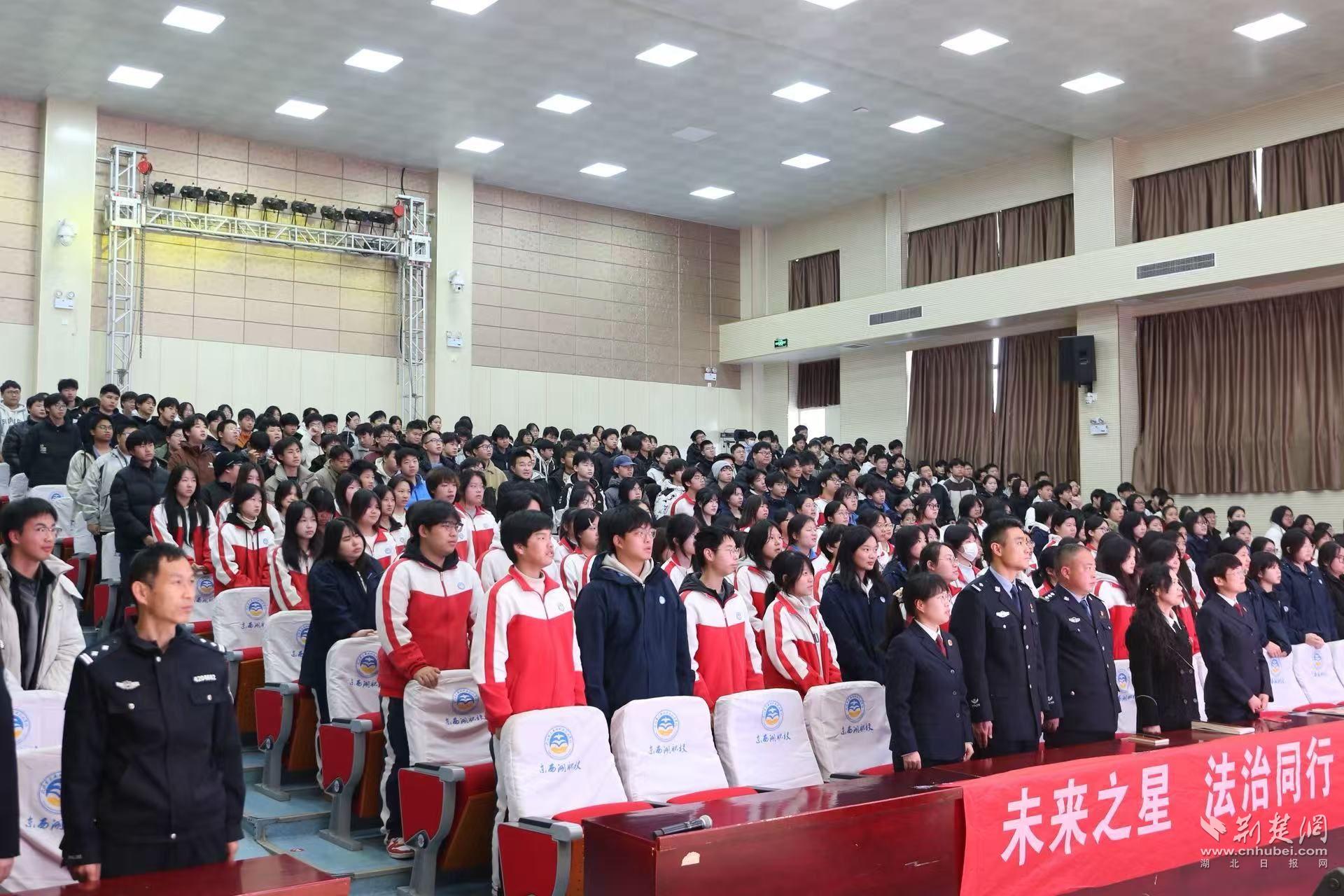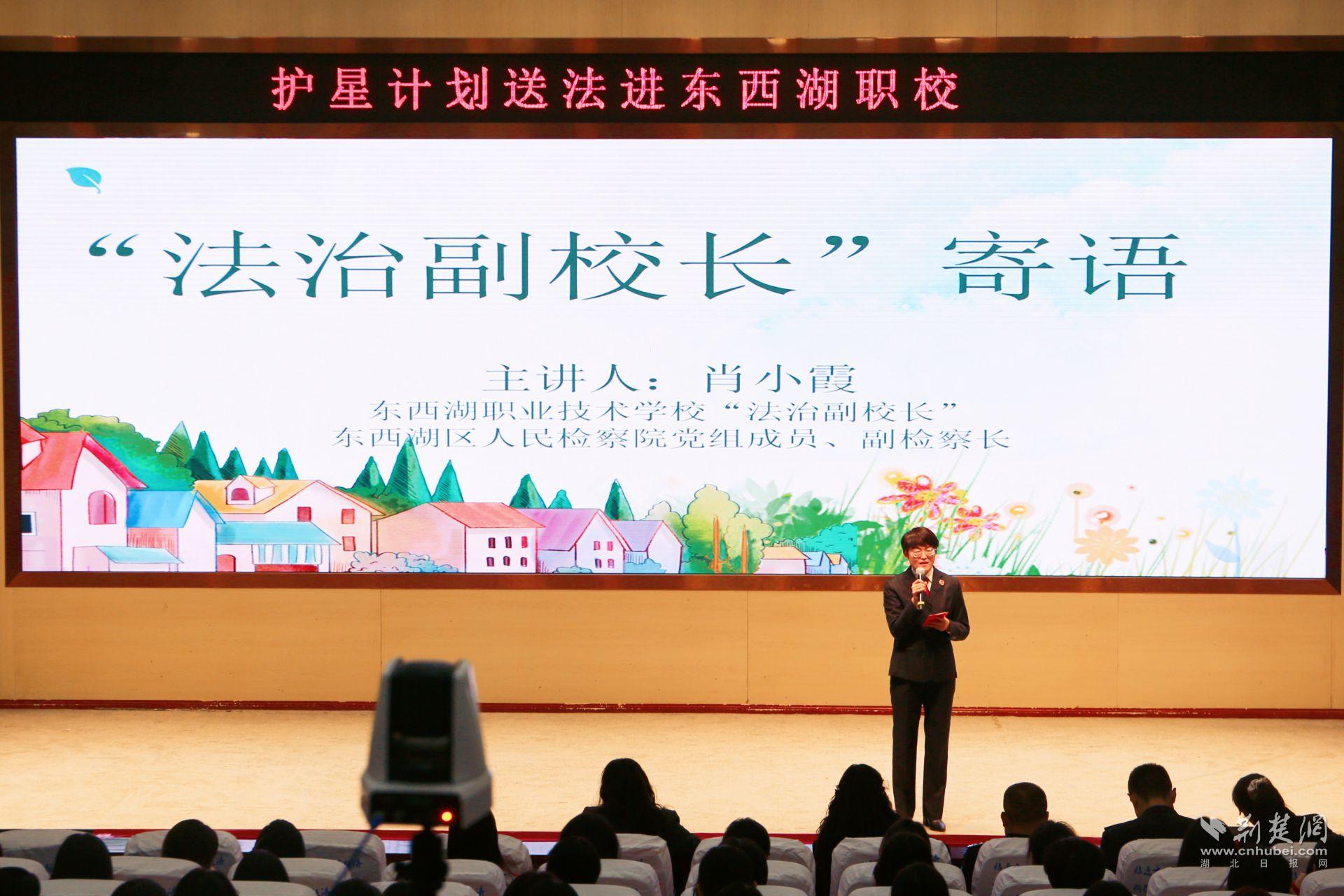 荆楚网(湖北日报网)讯(通讯员罗晶洁 石春康 何乐)为深入推进青少年普法宣传教育,引导广大学生树立法治观念、增强法治意识,3月19日,由东西湖区委依法治区办牵头,区人民检察院、区司法局、武汉市司法局第一强制隔离戒毒所联合举办的“护星计划”送法进校园活动在东西湖职业技术学校顺利开展,为该校学生带来了一场干货满满的法治盛宴。本次活动同步开启直播,覆盖区职校学生1400人次。