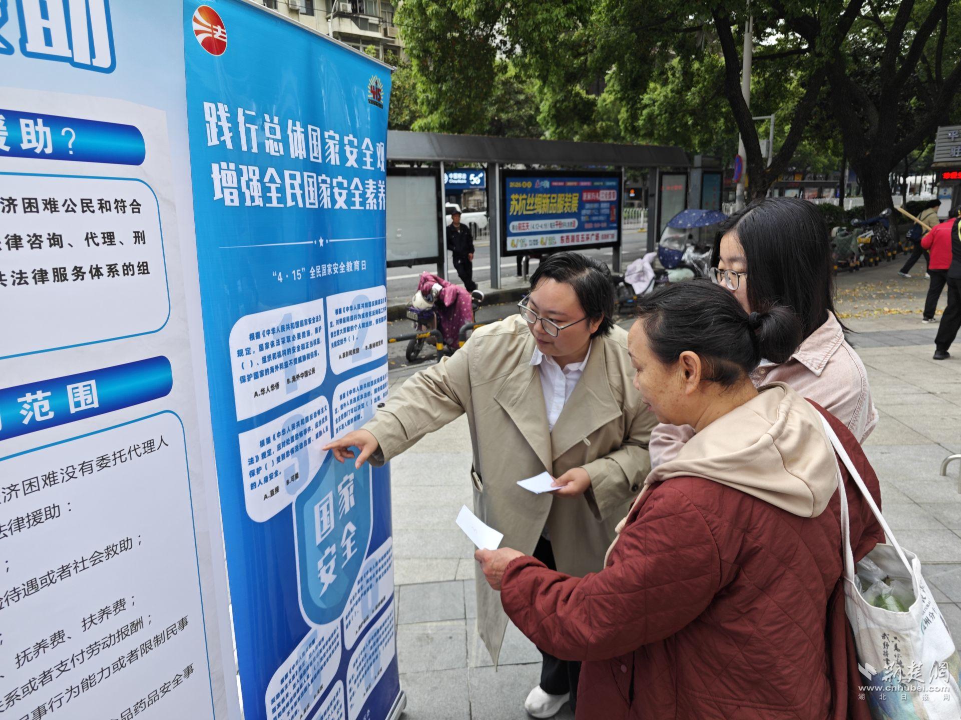 荆楚网(湖北日报网)讯(通讯员石春康)4月15日,在第十一个全民国家安全教育日来临之际,东西湖区以“统筹发展和安全 护航‘十五五’新征程”为主题,在海林广场举办全民国家安全教育日宣传活动,通过趣味互动、知识普及、法律援助等多元形式,让国家安全知识走进群众、深入人心,推动形成“人人关心国家安全、人人维护国家安全”的良好社会氛围。