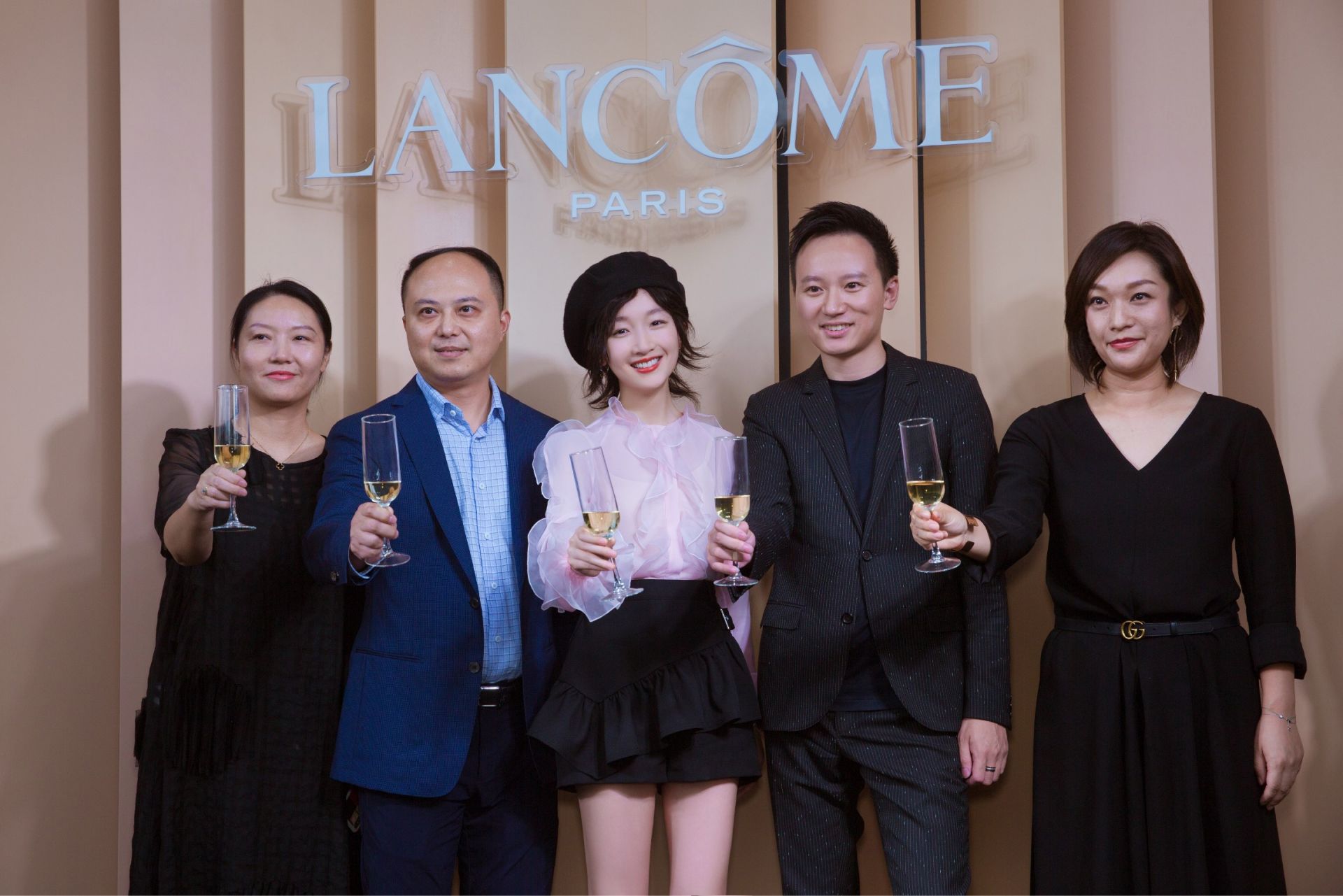 最后,Lancôme兰蔻(中国)品牌传播总监何学锋先生、Lancôme兰蔻(中国)大区销售经理涂小蓓女士,以及武商广场总经理王志明先生、武商广场副总经理肖海燕女士,和周冬雨一起共举香槟,庆祝此次活动完美举办。