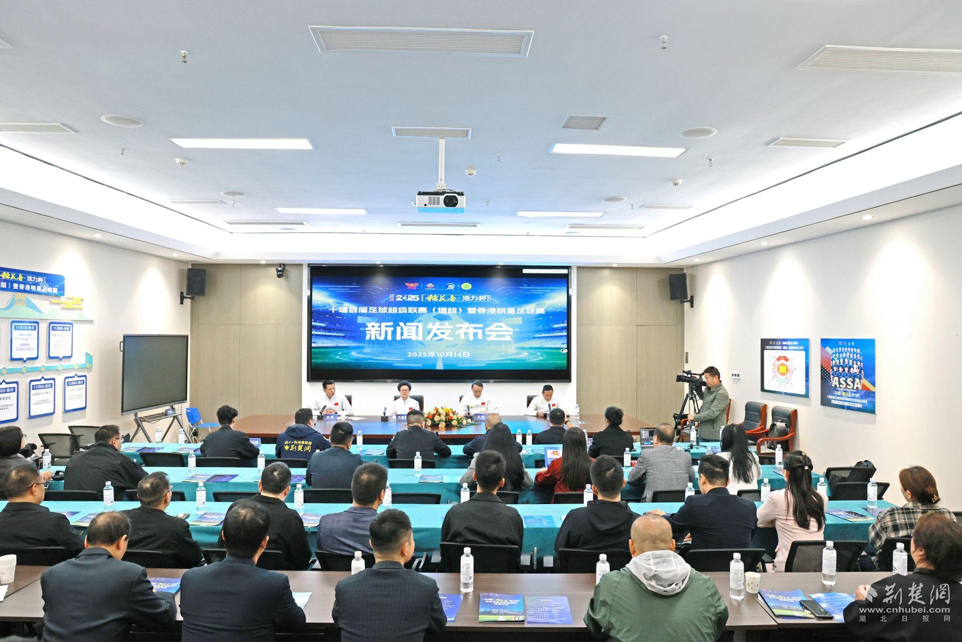 荆楚网(湖北日报网)讯(通讯员张丽)10月14日,2025“稻花香·活力杯”十堰首届足球超级联赛(堰超)暨香港明星足球赛新闻发布会在十堰市奥体中心综合体育馆举行,现场宣布“堰超”联赛启航,并将于11月8日在十堰市体育中心举行香港明星足球赛,通过“美酒+体育+音乐”的融合模式,打造全民参与、可品味、可感知、可沉浸的城市文化体育盛宴。