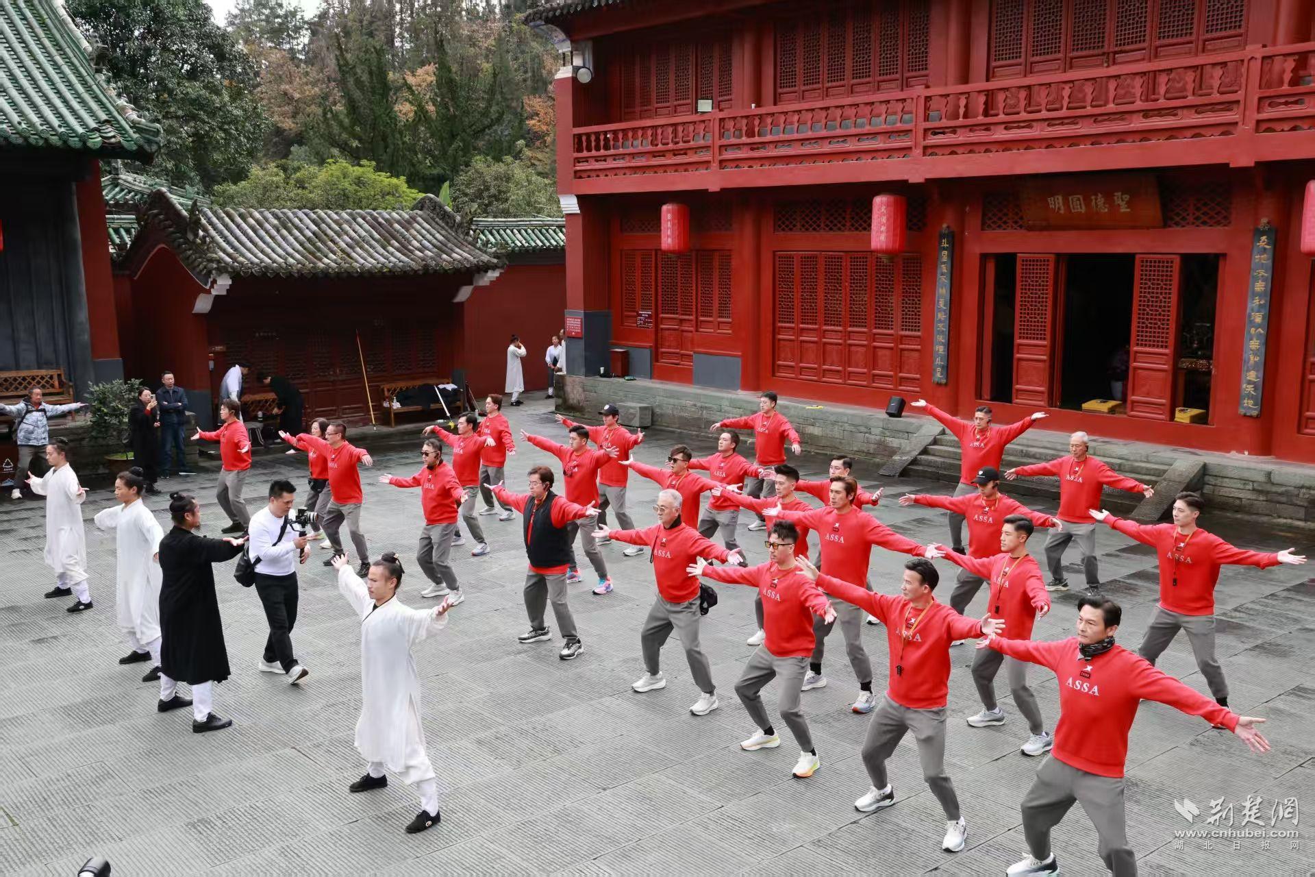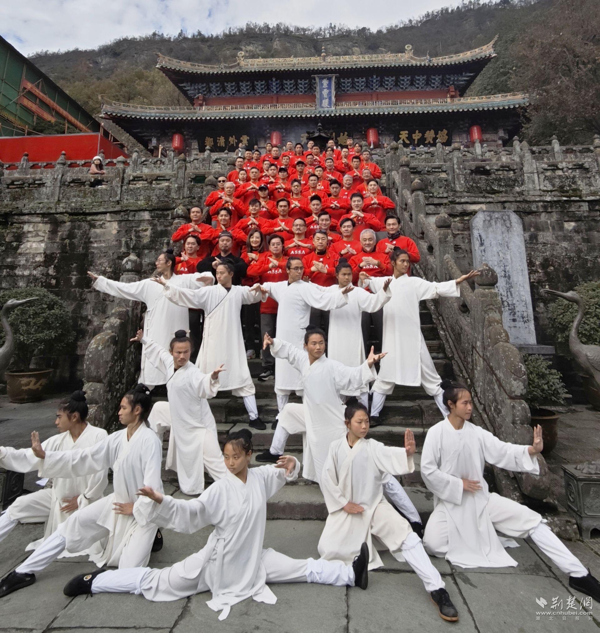 “左脚开步,气沉丹田……” 在紫霄宫的庭院中,武当道长的悉心指导下,平日里在绿茵场驰骋的明星们,此刻整齐列队学起了太极。谭咏麟跟着节奏缓缓抬手、转身,动作虽略显生疏却格外认真,还不时与身旁的人互相比划;大家一招一式颇有侠者风范,引得道长连连称赞 “有武学天赋”;明星们学得一丝不苟,边学边向道长请教发力技巧,纷纷打趣道:“学好太极说不定能提升赛场灵活性!”精彩的太极与武术表演更是让明星们目不暇接,掌声此起彼伏,表演结束后,大家在台阶上与表演者合影,定格这难得的 “仙山侠影” 瞬间。