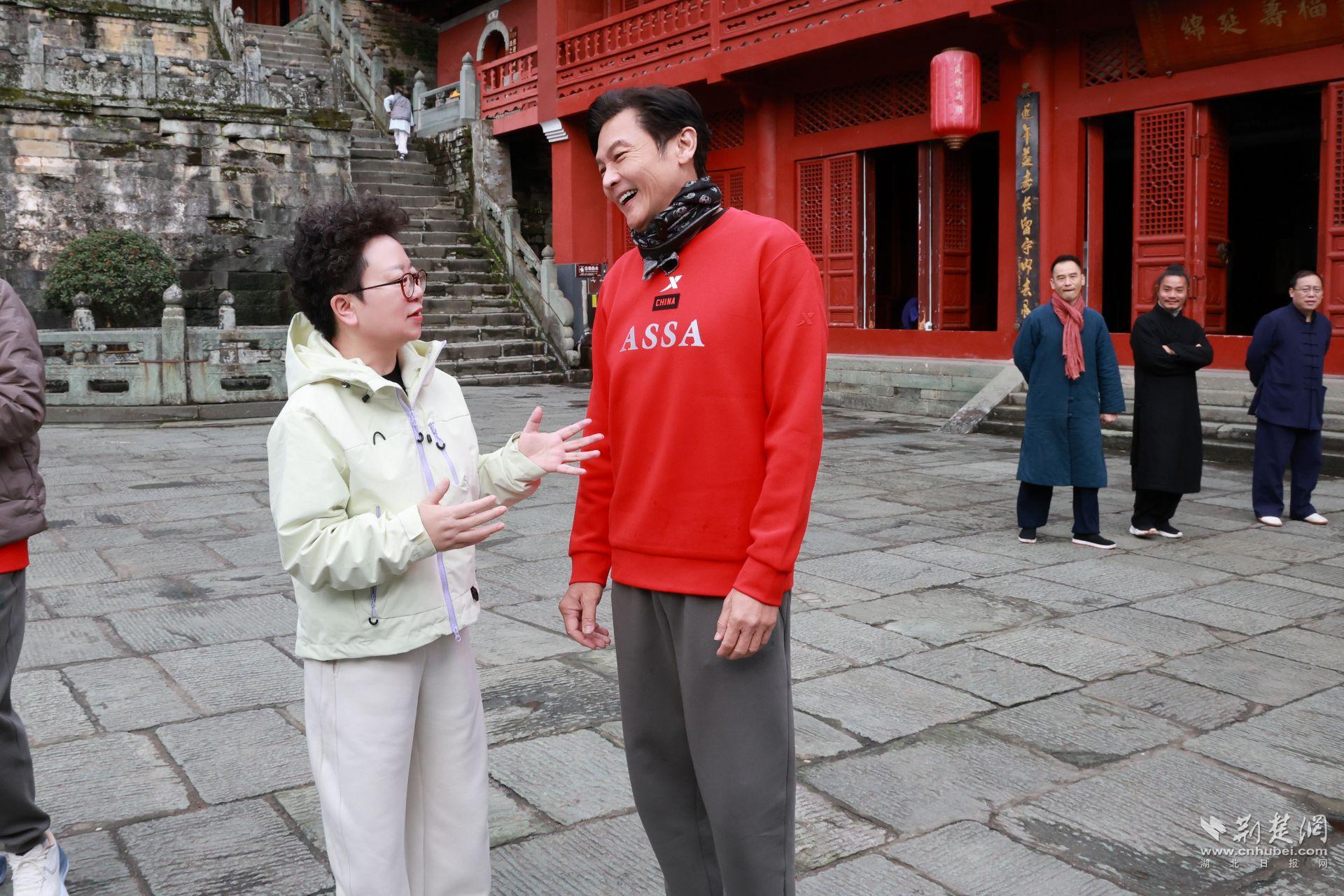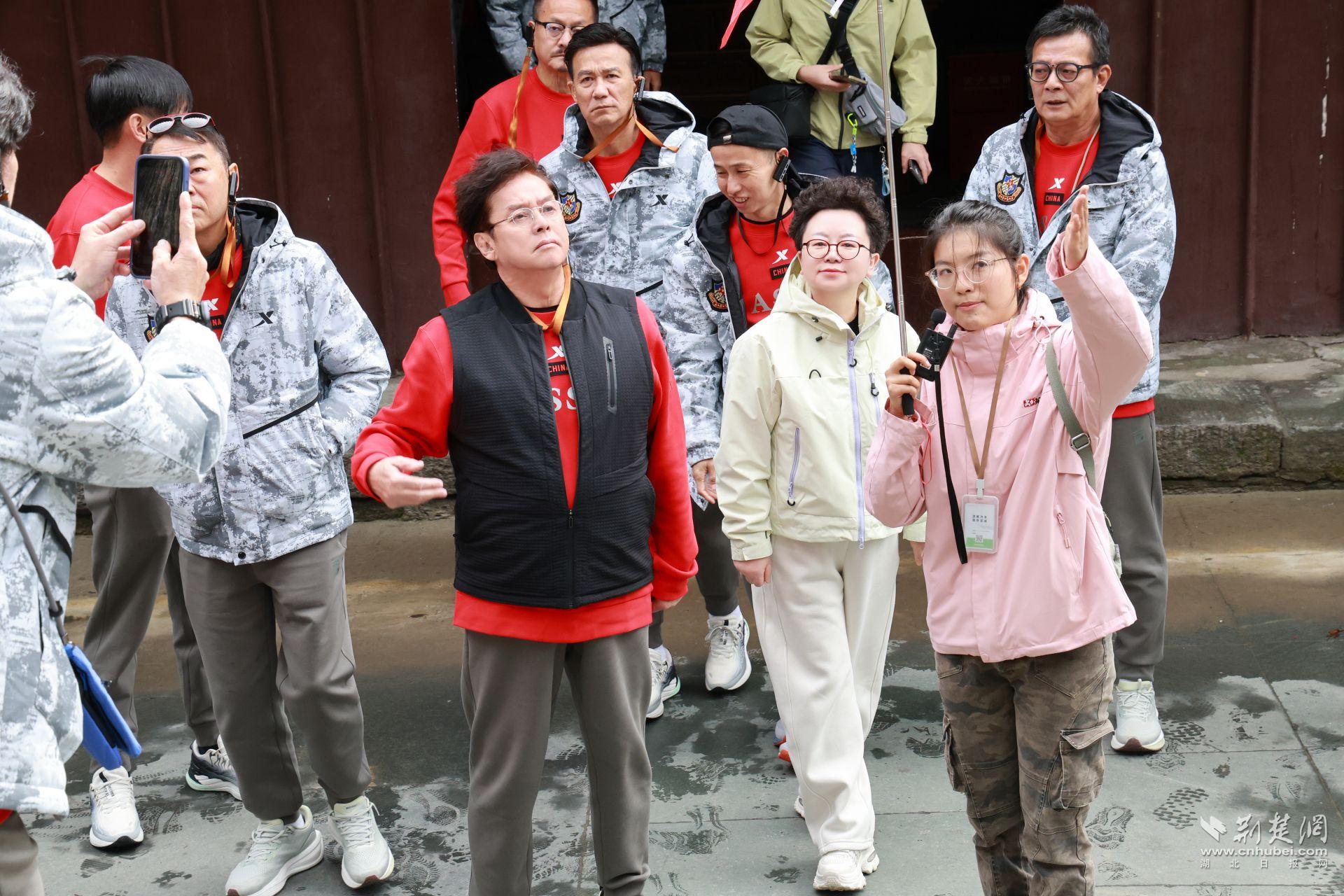 在武当山,明星们怀着崇敬之心,认真聆听讲解员讲解武当文化传承与道教养生智慧。