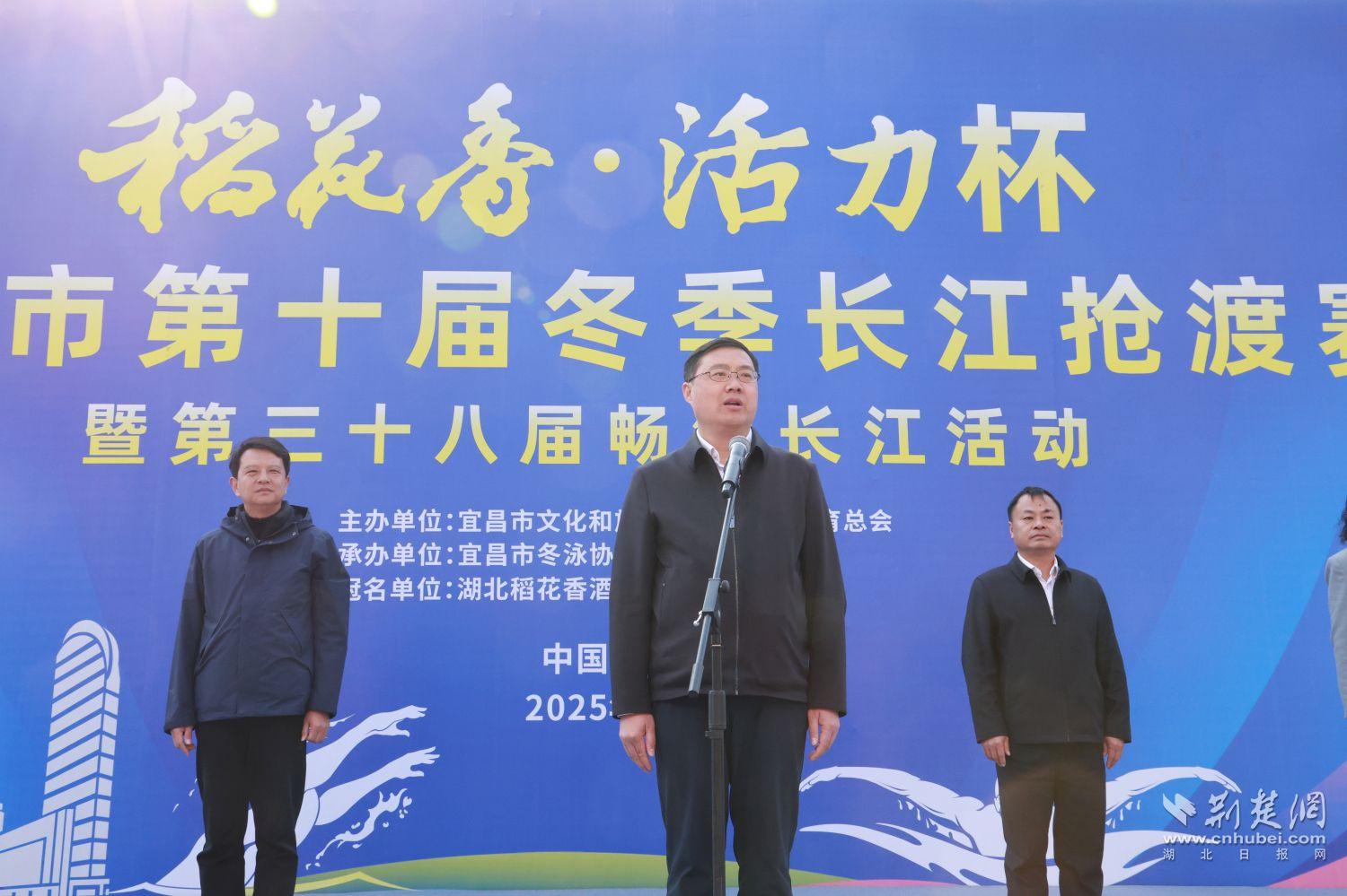 鲜于开明在欢迎辞中表示,宜昌集厚重文化、绝美山水与世纪工程于一身,是长江大保护“立规之地”。他感谢社会各界特别是稻花香对宜昌体育事业发展的长期支持。他指出,冬泳赛事已成为全方位展示宜昌群众体育成就的窗口,体现了“建设长江大保护典范城市、打造世界级宜昌”的独特魅力。他希望全体运动员充分发扬挑战自我、奋勇争先的体育精神,在这片“江豚逐浪”的生态画卷中劈波斩浪,赛出风格、赛出水平、赛出友谊,让这场连续举办多年的城市传统赛事绽放新的光彩。