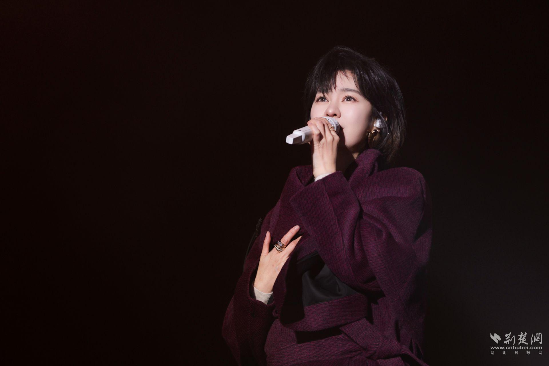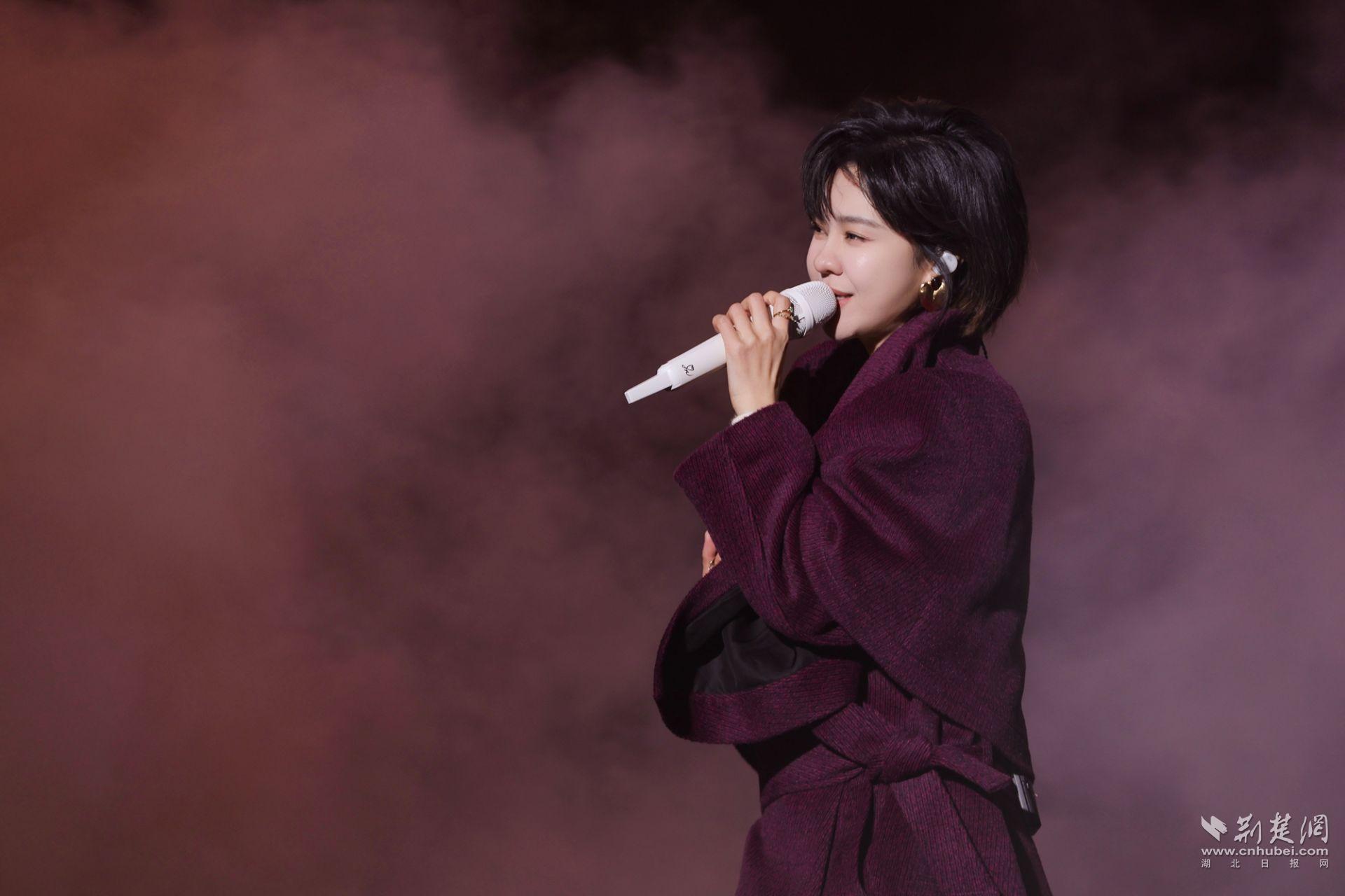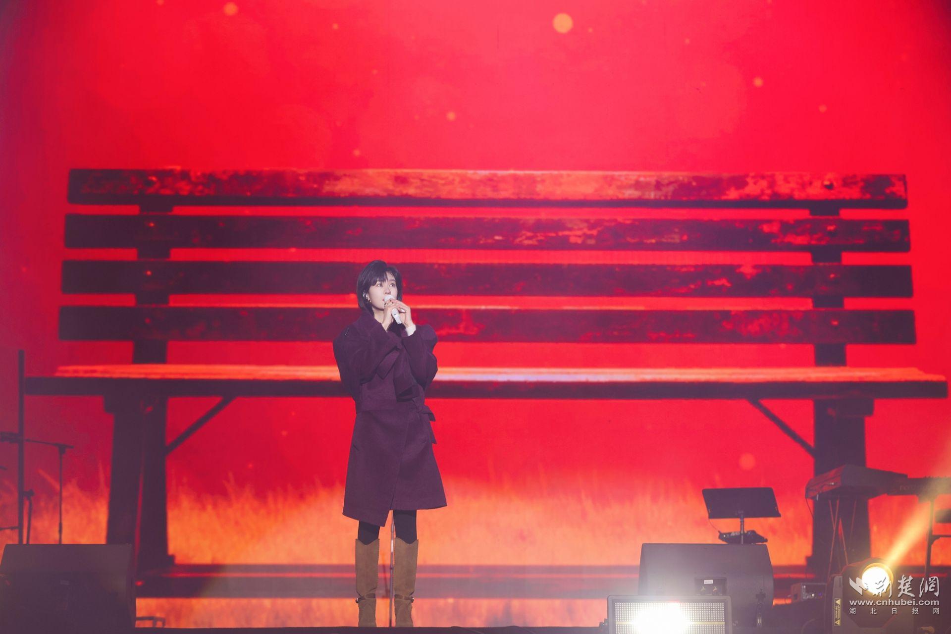 “非常感谢稻花香让我来到黄冈,虽然天气很冷,但是看到你们很暖心。”郁可唯优雅登场,温柔歌唱。面对热情似火的观众,郁可唯挥手回应。“我们说好不分离,要一直一直在一起……”《时间煮雨》的旋律一响,无数人的青春记忆被唤醒,郁可唯用她温暖的声音,将时光的故事娓娓道来。“知否,知否,应是绿肥红瘦”,流淌千年的婉约情思,在她《知否知否》的歌声中流转生姿。而《去有风的地方》带来清风般的治愈,与《路过人间》的透彻豁达遥相呼应,“路过人间,也才几十年”,轻轻抚慰着每一颗在尘世奔忙的心。她的歌声如清泉流淌,成为今夜最温柔的慰藉,也让这场与稻花香的相聚,更显绵长动人。