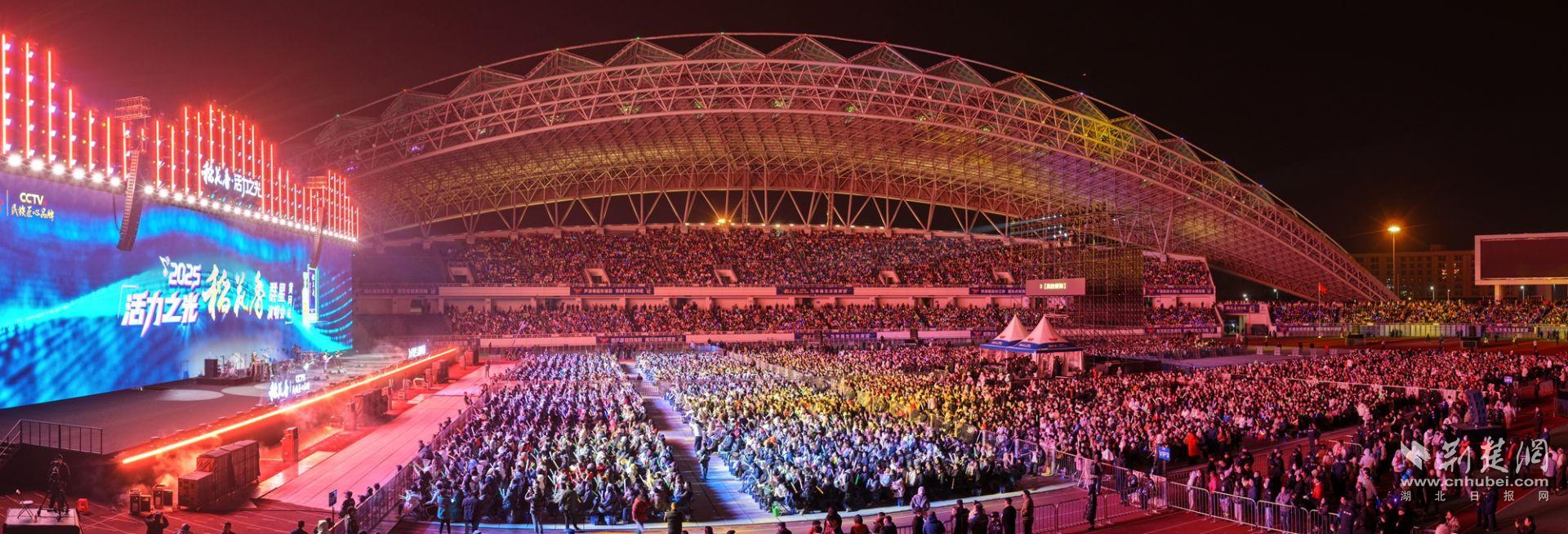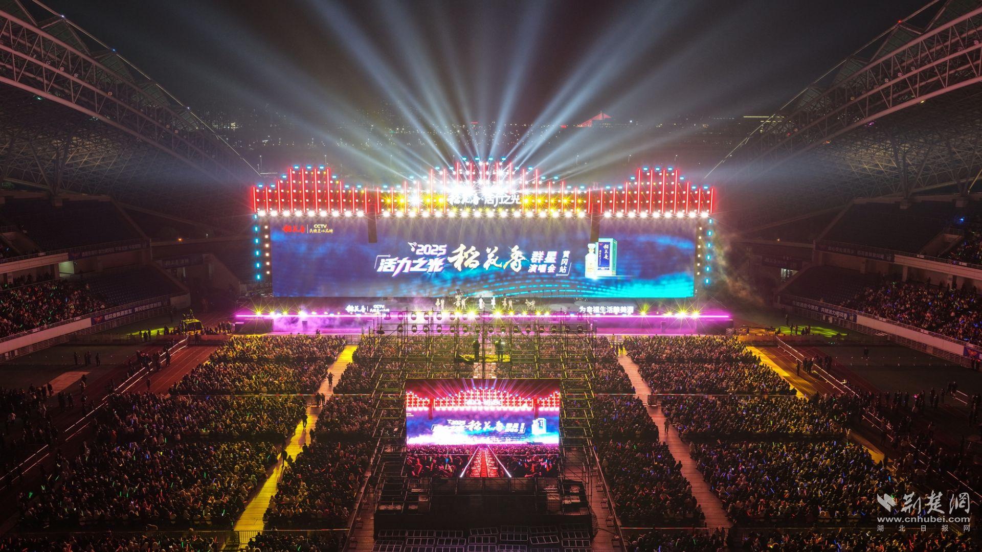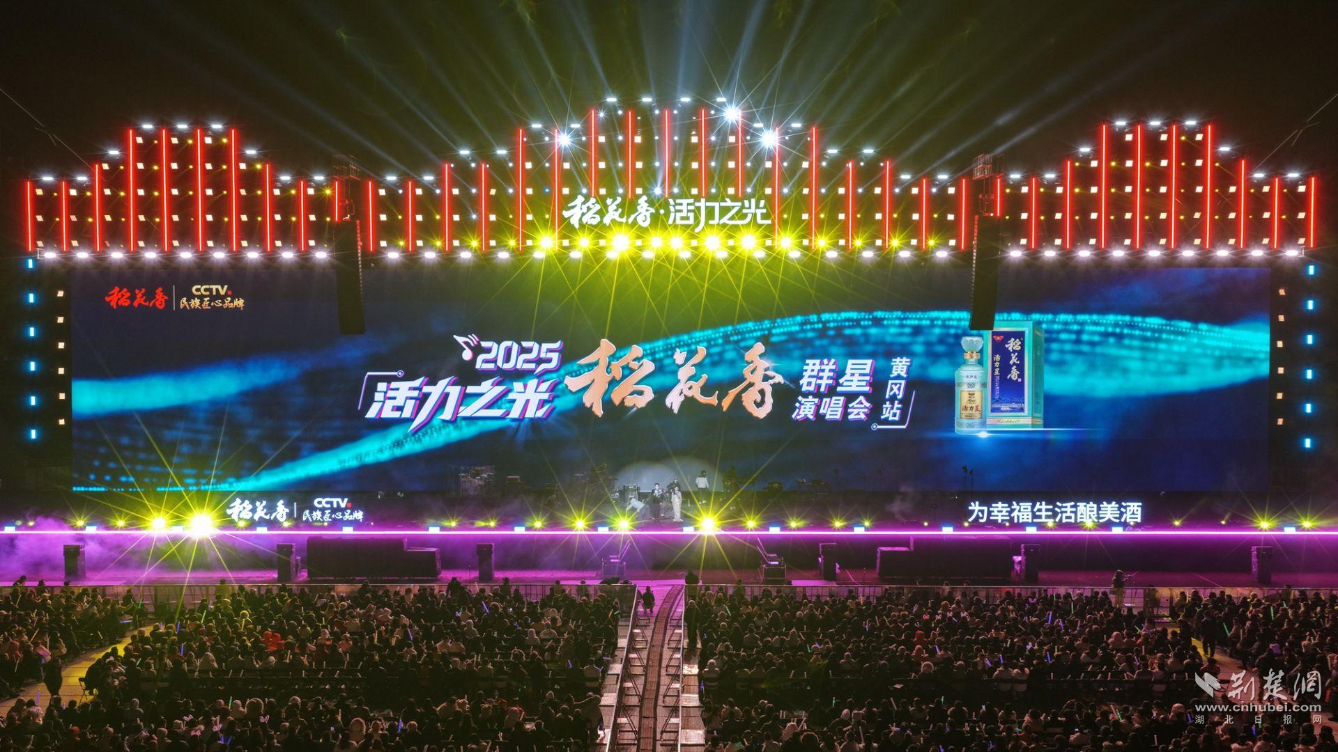 荆楚网(湖北日报网)讯(通讯员刘芹芹 张丽 李传文)12月26日晚,黄冈市体育中心体育场,星光璀璨,歌声缭绕。活力之光·稻花香2025群星演唱会(黄冈站)热力开唱、燃动全城,李荣浩、吴克群、郁可唯、动力火车、叶世荣、梦然、陈泳希齐聚大美黄冈,唱响时代之音,点亮活力之夜。