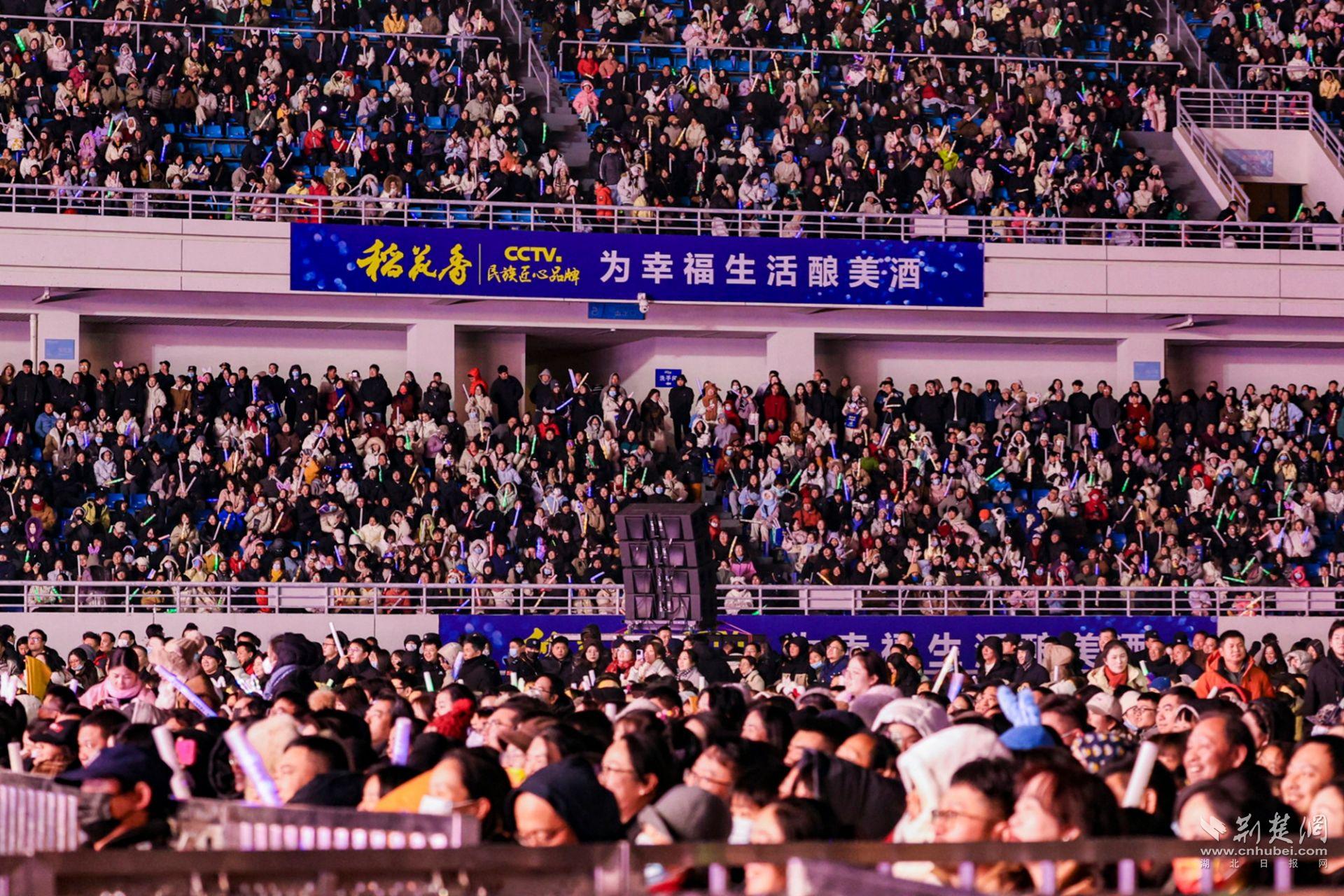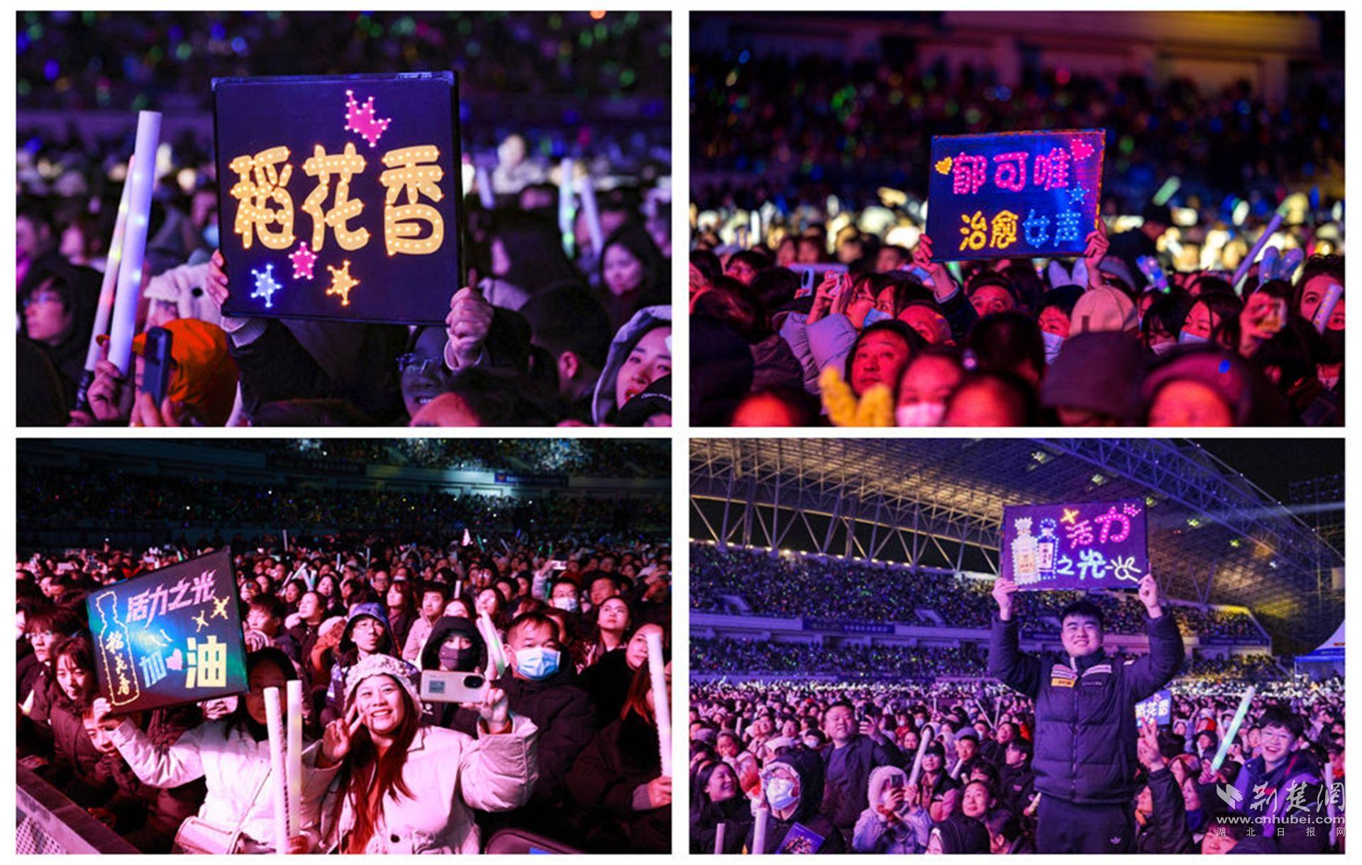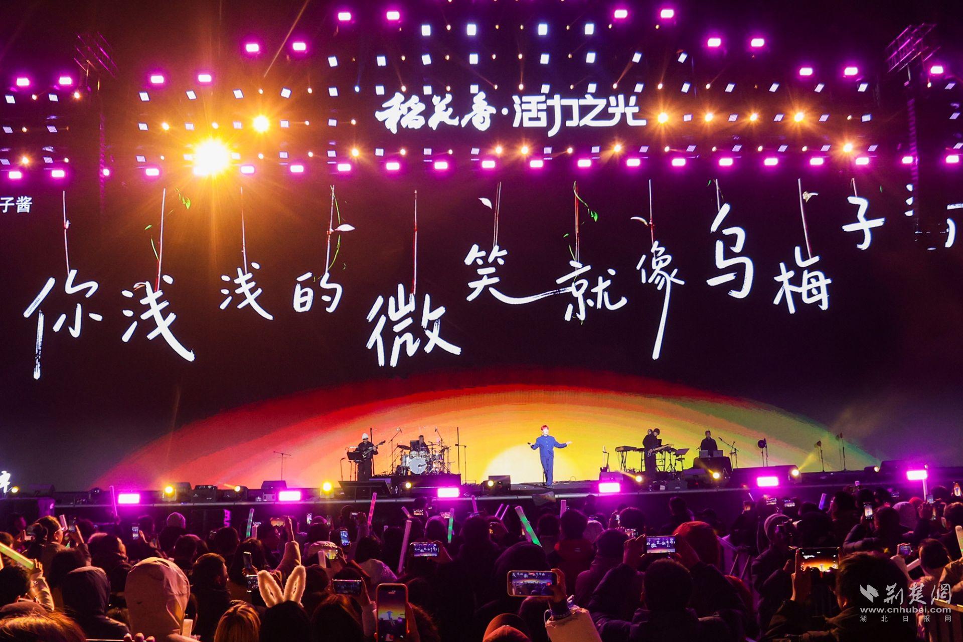 荆楚网(湖北日报网)讯(通讯员刘芹芹 张丽 李传文)12月26日晚,黄冈市体育中心体育场,星光璀璨,歌声缭绕。活力之光·稻花香2025群星演唱会(黄冈站)热力开唱、燃动全城,李荣浩、吴克群、郁可唯、动力火车、叶世荣、梦然、陈泳希齐聚大美黄冈,唱响时代之音,点亮活力之夜。