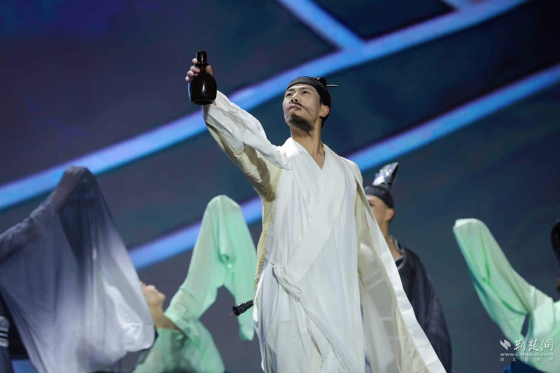 国家一级演员、武汉歌舞剧院首席舞者肖雪峰,领衔开场秀《稻花香里醉东坡》大型情景舞蹈,引领全场步入千载黄州的诗意画卷。