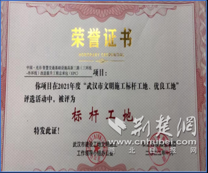 项目建设期间,汉阳市政多次迎接政府调研指导与社会媒体报道,成功举办中国施工企业管理协会、武汉市市政行业协会等多级观摩会。先后斩获 “东湖高新区文明施工‘十佳’工地”“武汉市文明施工标杆工地、优良工地”“江城十大智慧工地”“武汉市建筑施工安全生产标准化示范工地”“武汉市流动红旗项目工地”“湖北省‘三个建造’融合试点项目”“湖北省‘六个工地’示范项目”“中国建筑业协会建设工程安全生产标准化工地(AAA)”等多项荣誉。