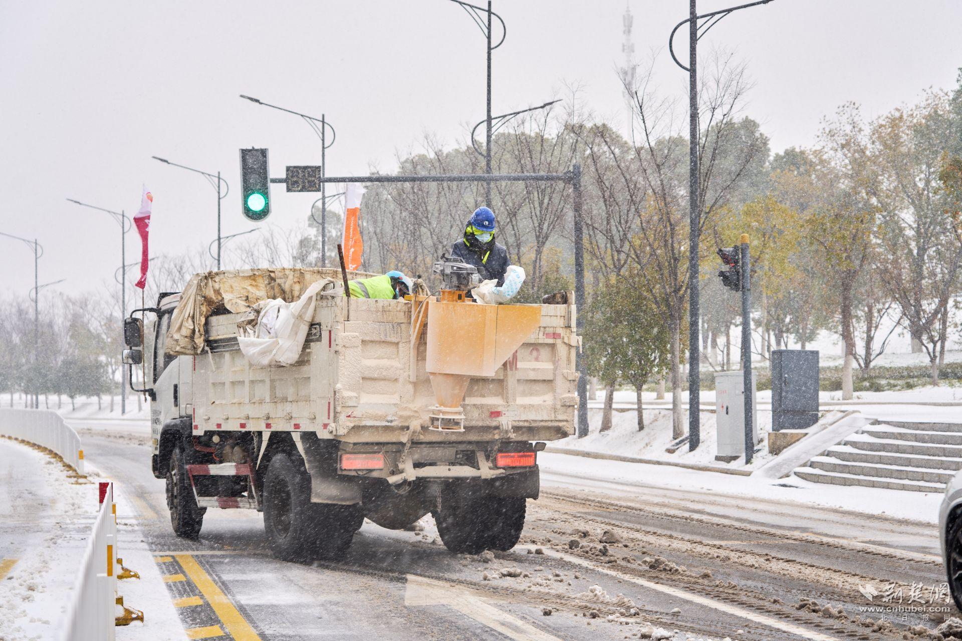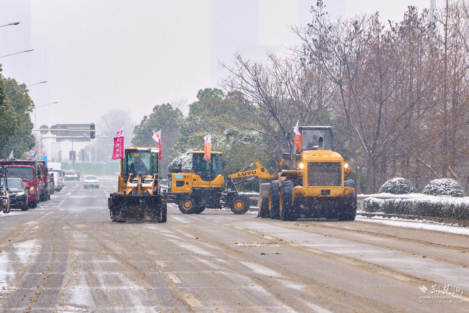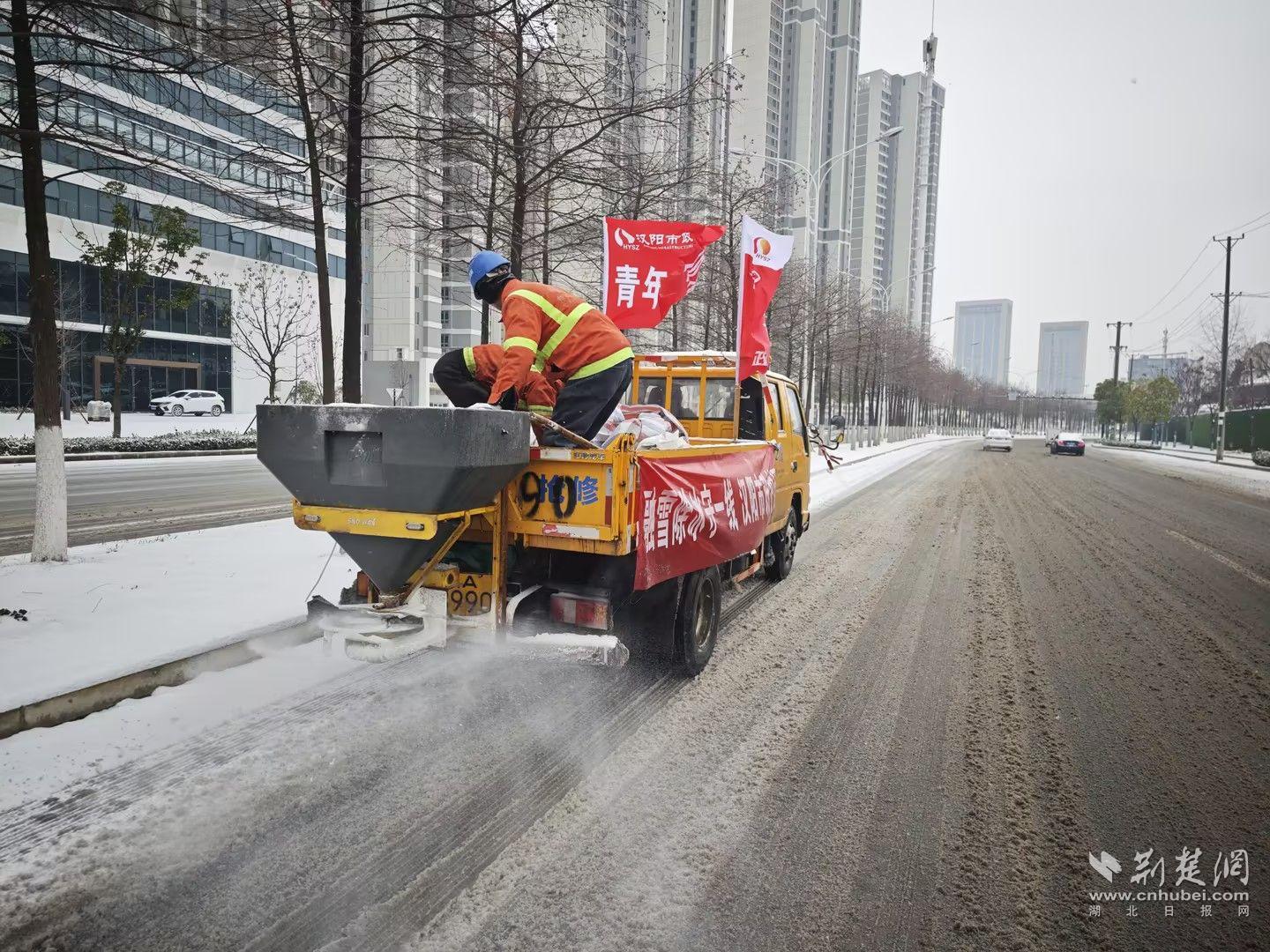 组图:汉阳市政工人铲冰除雪,守护交通畅行