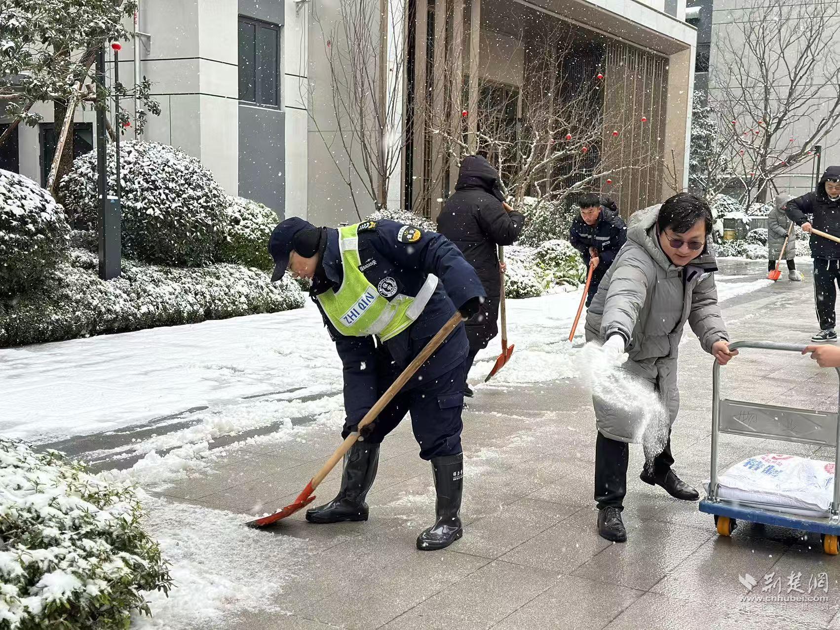 天创·黄金时代小区14号楼前,一位送孩子上学的妈妈正对单元门口新结的薄冰犯愁。巡逻至此的物业秩序小刘和管家晓雪立刻察觉,从北门岗亭取出融雪剂后快步上前:“您稍等,这雪一直下,地面容易反复结冰,我们马上处理。”他们利落地撒盐除冰,开辟出一条干爽小路。“现在可以了,路上当心。”妈妈松了口气,感激道:“你们真是从夜里忙到早上啊。”“应该的,”两人搓了搓冻红的手,“雪不停,我们就不停。”