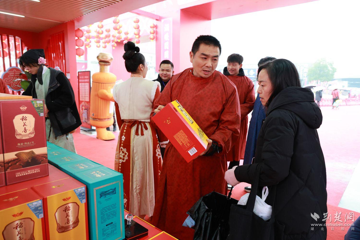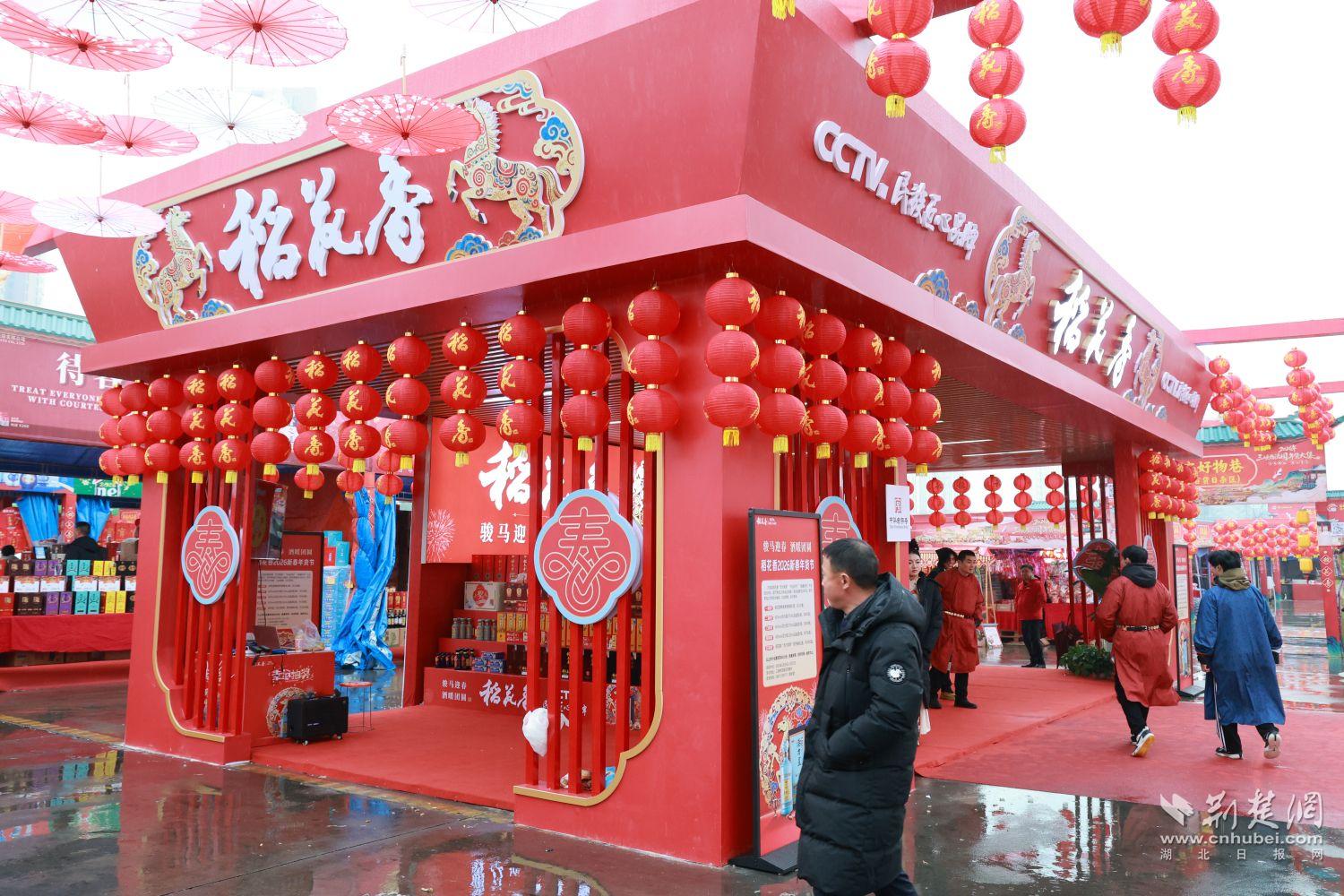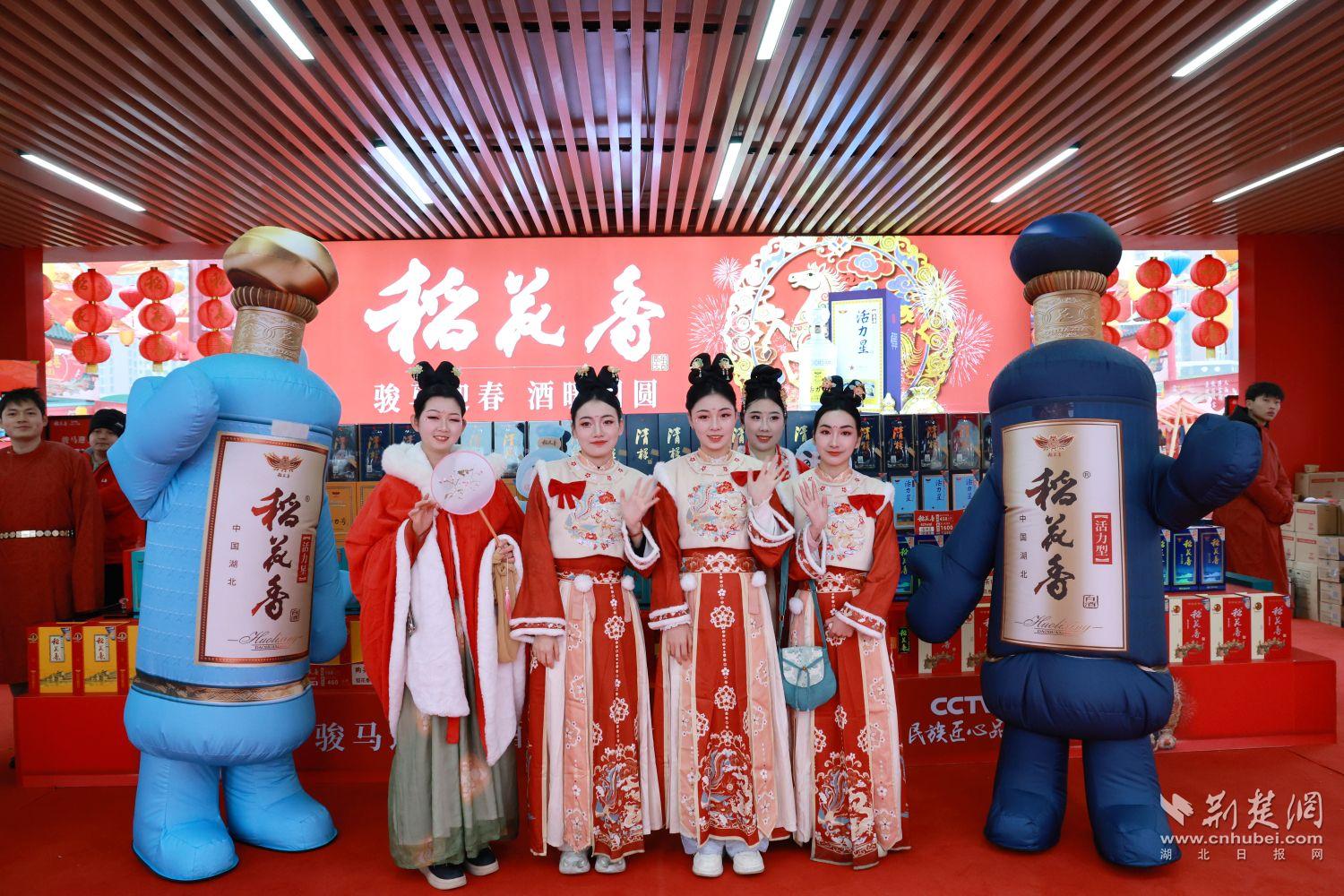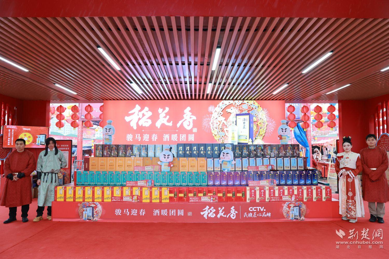 活动现场,各个主题街巷人潮涌动,年味十足。在“琼浆万福巷”核心展区,稻花香展位格外醒目。以大红色为主基调的展馆设计,营造出热烈、喜庆、祥和的氛围,氤氲着浓郁的年味。