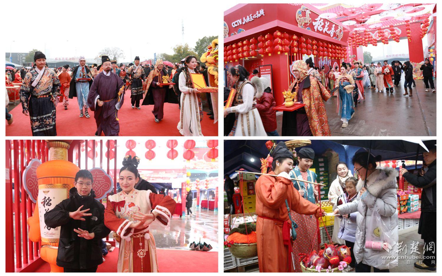 开幕盛典启新章,唐韵新风扑面来。开市大典于唐风龙门处举行,《唐宫乐宴》乐舞惊艳呈现,“礼官”开场、鼓鸣九响,宣告年货大集开市。随后举行的开幕式,文艺演出精彩纷呈,《幸福薅呀薅》《土家敬酒歌》以欢快节奏点燃全场,《春风十万里》《幸福中国一起走》唱响时代新声,《鱼壕姑娘》《山歌绕着彩云追》演绎乡土情韵,压轴曲目《爱上宜昌》深情表达对家乡的热爱。传统与现代交织,文化与地域融合,拉开了“穿越唐朝”打年货的序幕。